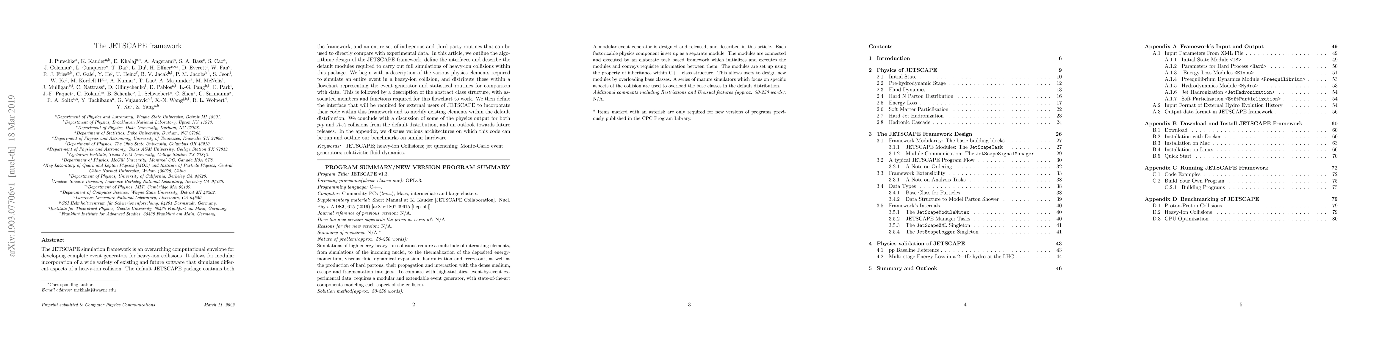 The JETSCAPE simulation framework is an overarching computational envelope for developing complete event generators for heavy-ion collisions. It allows for modular incorporation of a wide variety of existing and future software that simulates different aspects of a heavy-ion collision. The default JETSCAPE package contains both the framework, and an entire set of indigenous and third party routines that can be used to directly compare with experimental data. In this article, we outline the algorithmic design of the JETSCAPE framework, define the interfaces and describe the default modules required to carry out full simulations of heavy-ion collisions within this package. We begin with a description of the various physics elements required to simulate an entire event in a heavy-ion collision, and distribute these within a flowchart representing the event generator and statistical routines for comparison with data. This is followed by a description of the abstract class structure, with associated members and functions required for this flowchart to work. We then define the interface that will be required for external users of JETSCAPE to incorporate their code within this framework and to modify existing elements within the default distribution. We conclude with a discussion of some of the physics output for both $p$-$p$ and $A$-$A$ collisions from the default distribution, and an outlook towards future releases. In the appendix, we discuss various architectures on which this code can be run and outline our benchmarks on similar hardware.