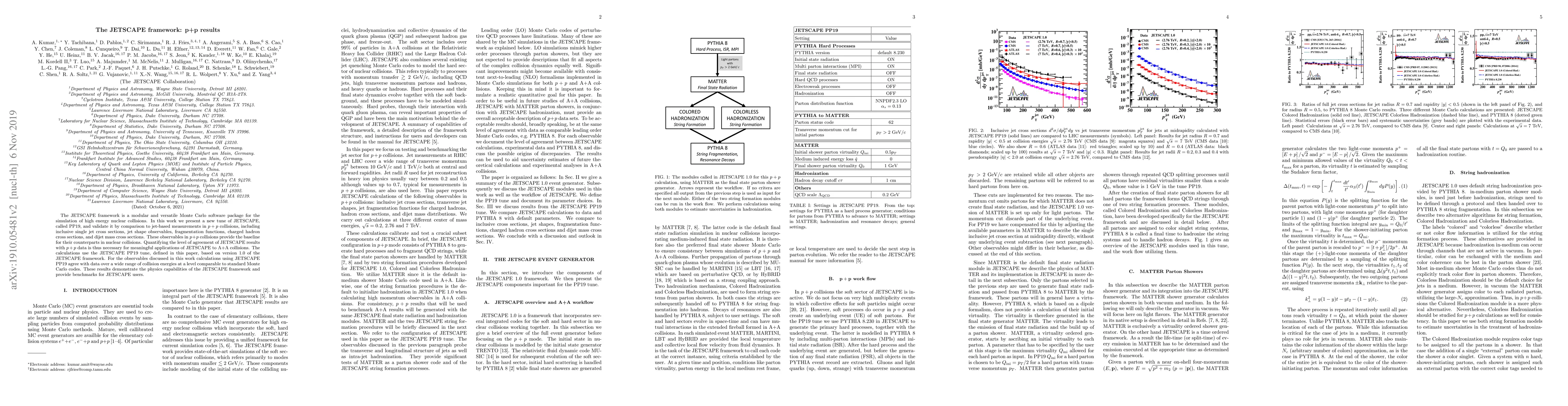 The JETSCAPE framework is a modular and versatile Monte Carlo software package for the simulation of high energy nuclear collisions. In this work we present a new tune of JETSCAPE, called PP19, and validate it by comparison to jet-based measurements in $p+p$ collisions, including inclusive single jet cross sections, jet shape observables, fragmentation functions, charged hadron cross sections, and dijet mass cross sections. These observables in $p+p$ collisions provide the baseline for their counterparts in nuclear collisions. Quantifying the level of agreement of JETSCAPE results with $p+p$ data is thus necessary for meaningful applications of JETSCAPE to A+A collisions. The calculations use the JETSCAPE PP19 tune, defined in this paper, based on version 1.0 of the JETSCAPE framework. For the observables discussed in this work calculations using JETSCAPE PP19 agree with data over a wide range of collision energies at a level comparable to standard Monte Carlo codes. These results demonstrate the physics capabilities of the JETSCAPE framework and provide benchmarks for JETSCAPE users.