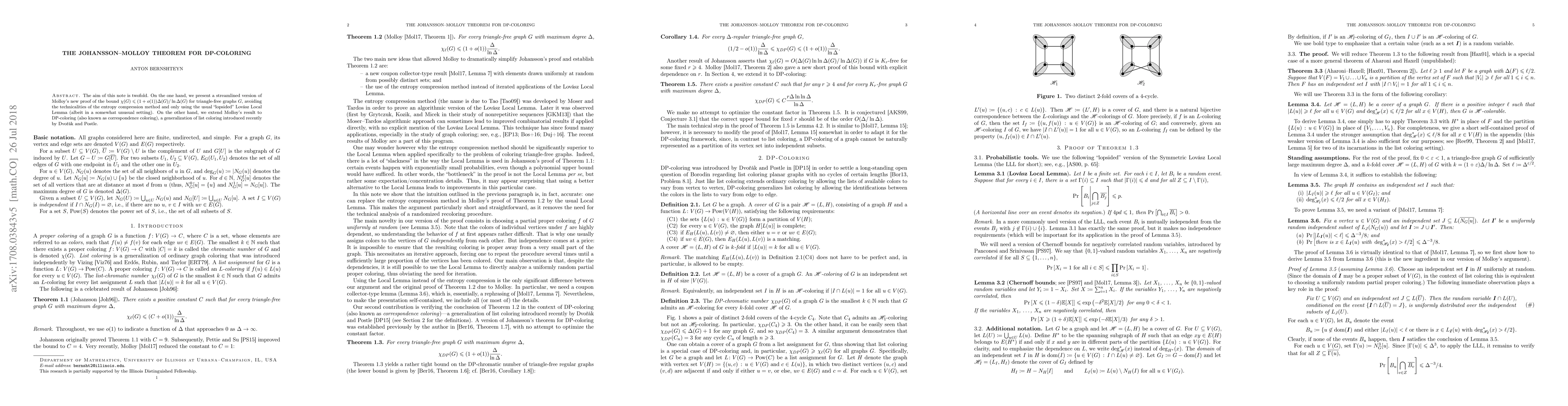 Researchers streamlined Molloy's proof of a coloring bound for triangle-free graphs, extending it to DP-coloring, a generalization of list coloring.