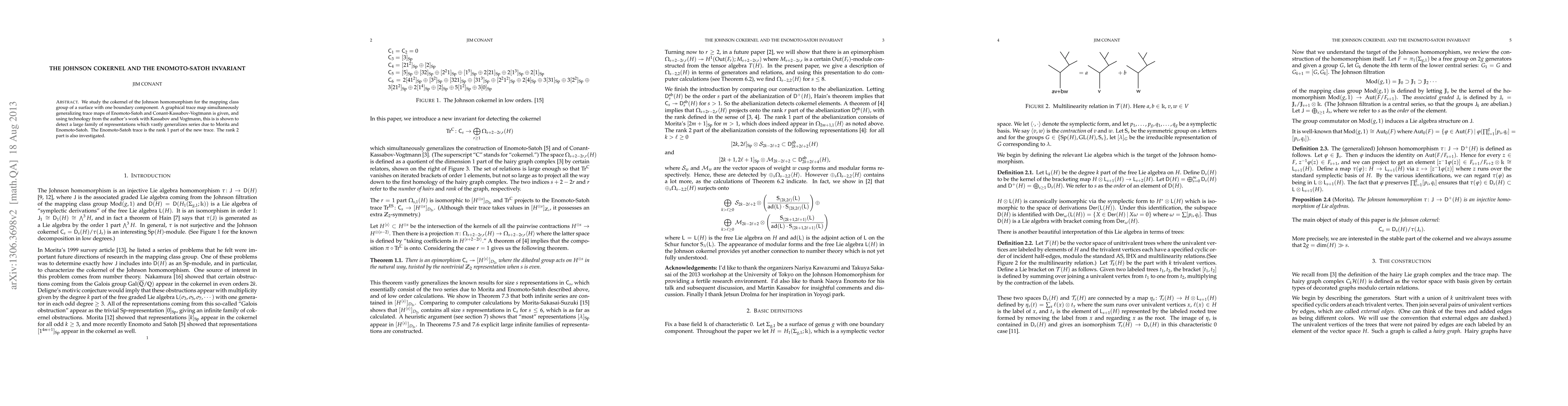 We study the cokernel of the Johnson homomorphism for the mapping class group of a surface with one boundary component. A graphical trace map simultaneously generalizing trace maps of Enomoto-Satoh and Conant-Kassabov-Vogtmann is given, and using technology from the author's work with Kassabov and Vogtmann, this is is shown to detect a large family of representations which vastly generalizes series due to Morita and Enomoto-Satoh. The Enomoto-Satoh trace is the rank 1 part of the new trace. The rank 2 part is also investigated.