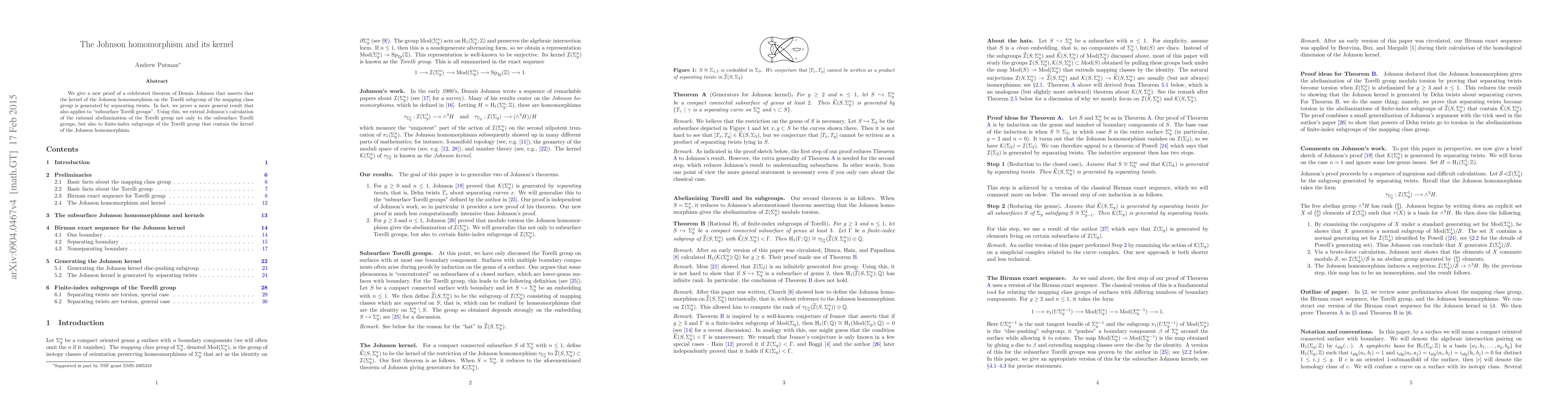 This paper presents a new proof for Dennis Johnson's theorem on the kernel of the Johnson homomorphism within the Torelli subgroup of the mapping class group, showing it is generated by separating twists. It extends Johnson's results to subsurface Torelli groups and finite-index subgroups containing the kernel.
