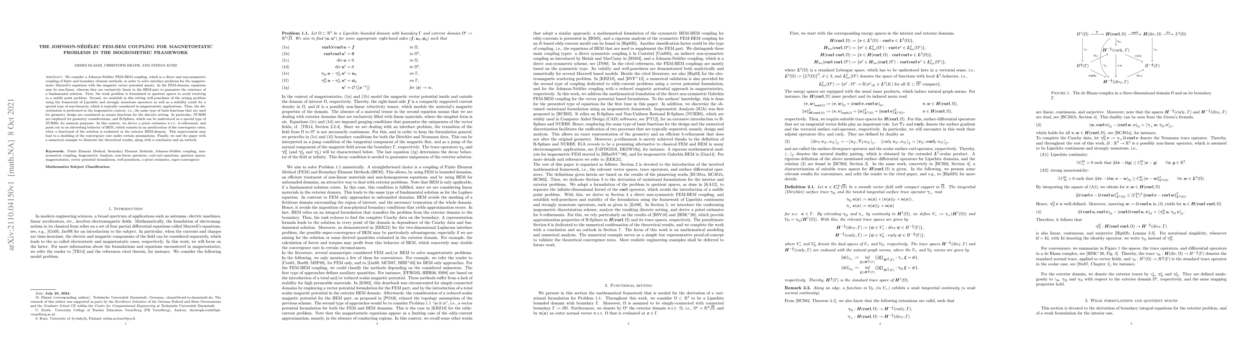 We consider a Johnson-N\'ed\'elec FEM-BEM coupling, which is a direct and non-symmetric coupling of finite and boundary element methods, in order to solve interface problems for the magnetostatic Maxwell's equations with the magnetic vector potential ansatz. In the FEM-domain, equations may be non-linear, whereas they are exclusively linear in the BEM-part to guarantee the existence of a fundamental solution. First, the weak problem is formulated in quotient spaces to avoid resolving to a saddle point problem. Second, we establish in this setting well-posedness of the arising problem using the framework of Lipschitz and strongly monotone operators as well as a stability result for a special type of non-linearity, which is typically considered in magnetostatic applications. Then, the discretization is performed in the isogeometric context, i.e., the same type of basis functions that are used for geometry design are considered as ansatz functions for the discrete setting. In particular, NURBS are employed for geometry considerations, and B-Splines, which can be understood as a special type of NURBS, for analysis purposes. In this context, we derive a priori estimates w.r.t. h-refinement, and point out to an interesting behavior of BEM, which consists in an amelioration of the convergence rates, when a functional of the solution is evaluated in the exterior BEM-domain. This improvement may lead to a doubling of the convergence rate under certain assumptions. Finally, we end the paper with a numerical example to illustrate the theoretical results, along with a conclusion and an outlook.