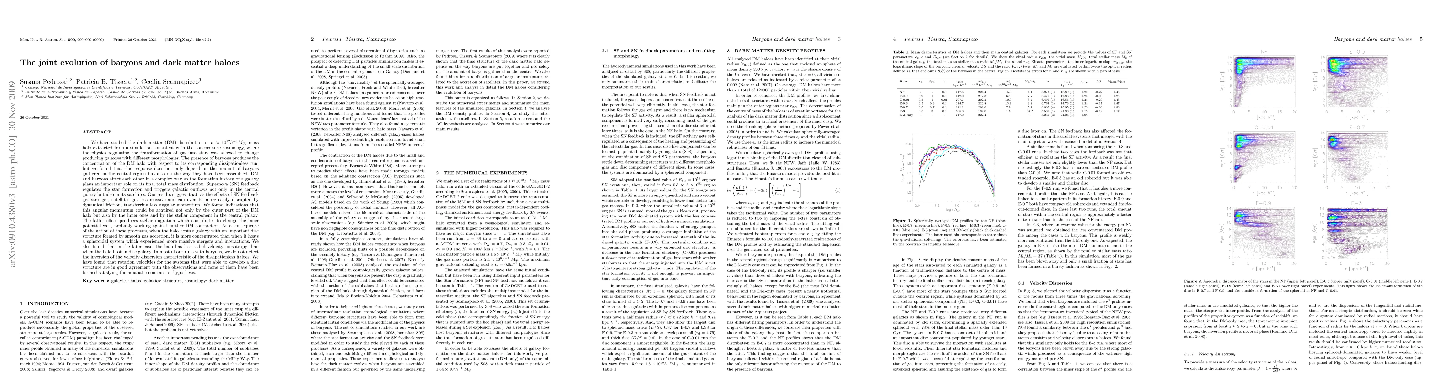 We have studied the dark matter (DM) distribution in a approx 10^12 h^-1 M_sun mass halo extracted from a simulation consistent with the concordance cosmology, where the physics regulating the transformation of gas into stars was allowed to change producing galaxies with different morphologies. The presence of baryons produces the concentration of the DM halo with respect to its corresponding dissipationless run, but we found that this response does not only depend on the amount of baryons gathered in the central region but also on the way they have been assembled. DM and baryons affect each other in a complex way so the formation history of a galaxy plays an important role on its final total mass distribution. Supernova (SN) feedback regulates the star formation and triggers galactic outflows not only in the central galaxy but also in its satellites. Our results suggest that, as the effects of SN feedback get stronger, satellites get less massive and can even be more easily disrupted by dynamical friction, transferring less angular momentum. We found indications that this angular momentum could be acquired not only by the outer part of the DM halo but also by the inner ones and by the stellar component in the central galaxy. The latter effect produces stellar migration which contributes to change the inner potential well, probably working against further DM contraction. As a consequence of the action of these processes, when the halo hosts a galaxy with an important disc structure formed by smooth gas accretion, it is more concentrated than when it hosts a spheroidal system which experienced more massive mergers and interactions. (abridged)