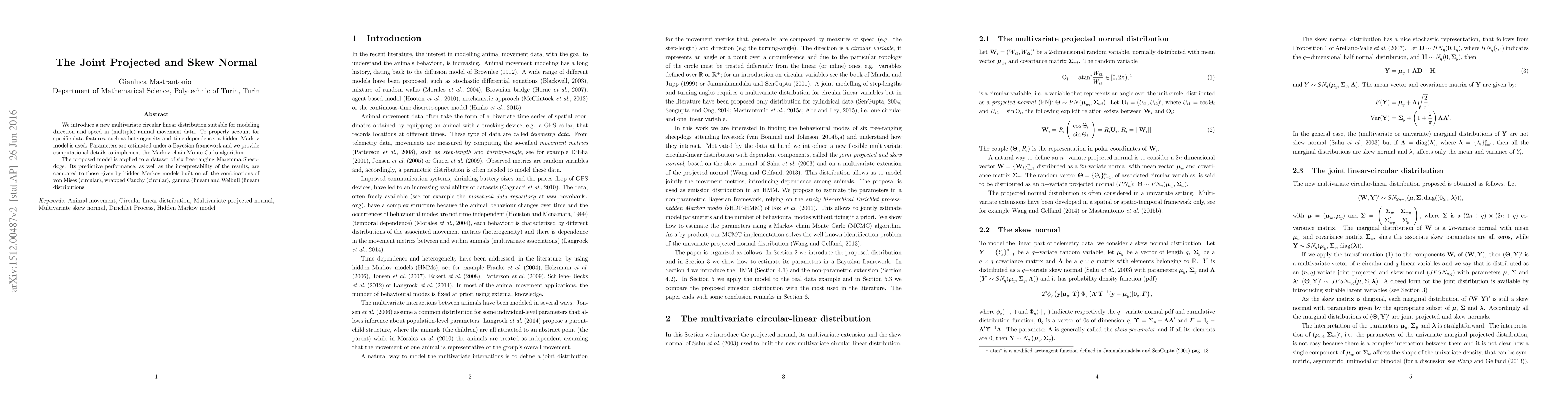 We introduce a new multivariate circular linear distribution suitable for modeling direction and speed in (multiple) animal movement data. To properly account for specific data features, such as heterogeneity and time dependence, a hidden Markov model is used. Parameters are estimated under a Bayesian framework and we provide computational details to implement the Markov chain Monte Carlo algorithm. The proposed model is applied to a dataset of six free-ranging Maremma Sheepdogs. Its predictive performance, as well as the interpretability of the results, are compared to those given by hidden Markov models built on all the combinations of von Mises (circular), wrapped Cauchy (circular), gamma (linear) and Weibull (linear) distributions