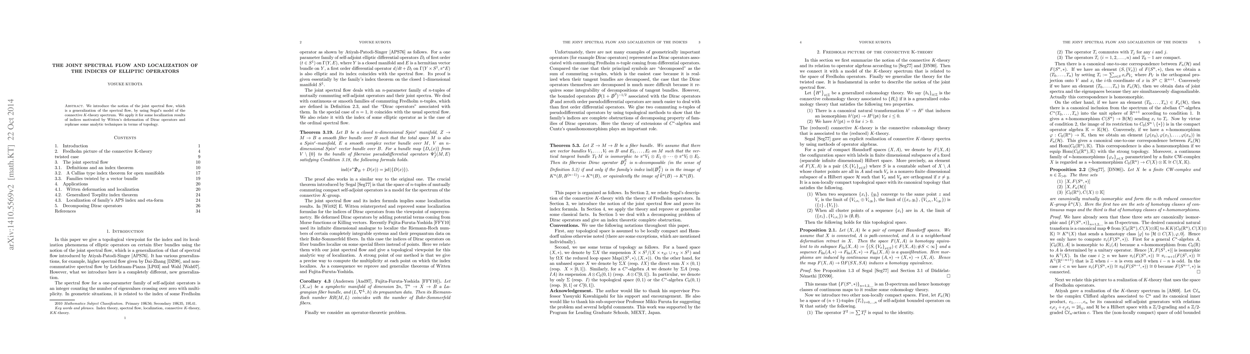 We introduce the notion of the joint spectral flow, which is a generalization of the spectral flow, by using Segal's model of the connective $K$-theory spectrum. We apply it for some localization results of indices motivated by Witten's deformation of Dirac operators and rephrase some analytic techniques in terms of topology.