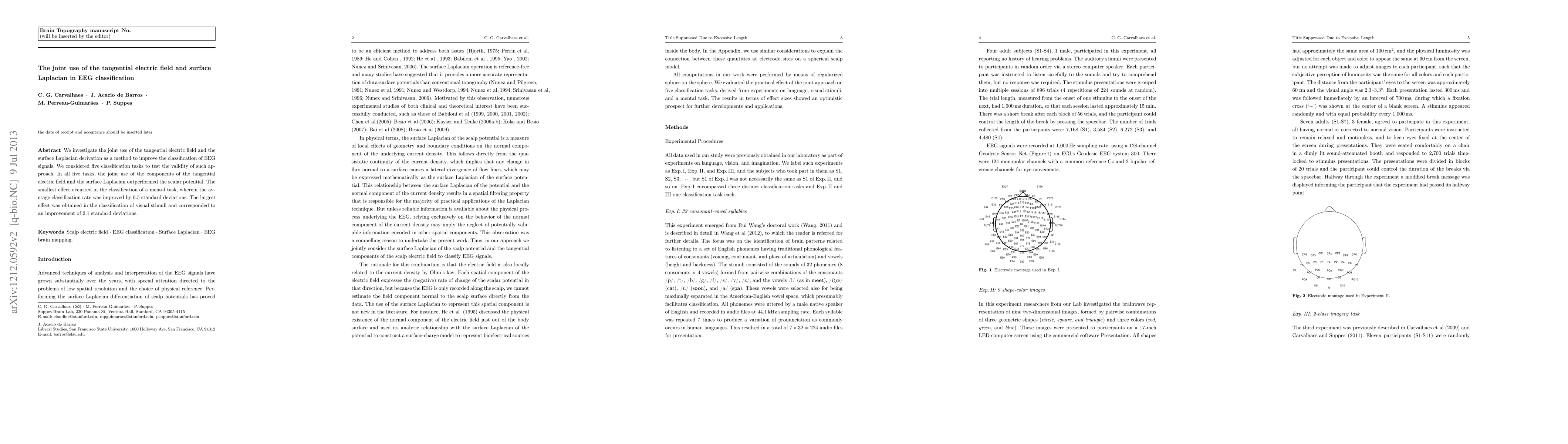 This paper discusses the use of the scalp electric field to decode EEG-recorded brain processes. Instead of using bipolar measurements, the scalp electric field is described as a 3-vector field whose orthogonal components are obtained from the data through spline differentiation. The method was tested in the context of brainwave recognition with experiments involving brain representation of spoken phonemes, visual images, and mental images. The practical effect of improvements in recognition rates was assessed by estimating effect sizes and confidence intervals, the results suggesting a good prospect for other applications.