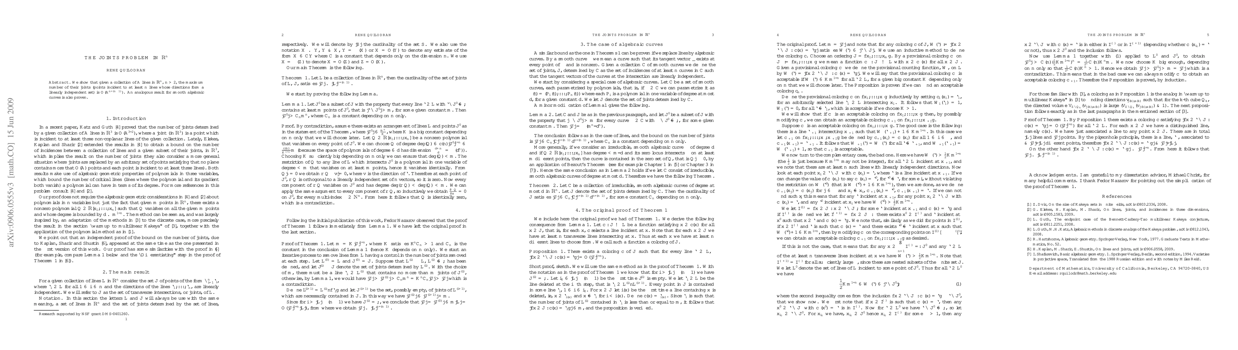 Researchers found that in n-dimensional space, a set of lines can have at most O(A^{n/(n-1)}) joints, where A is the number of lines.