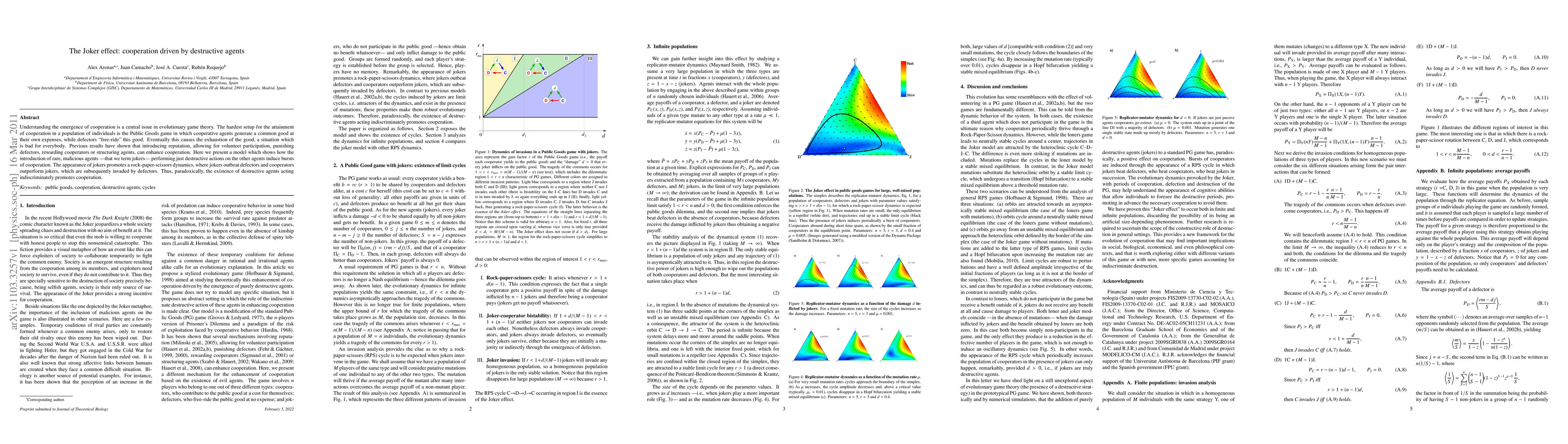 This paper explores how rare, destructive agents (termed jokers) can paradoxically enhance cooperation in a Public Goods game by creating a rock-paper-scissors dynamic, where jokers temporarily outcompete defectors, leading to subsequent cooperation surges. The presence of jokers ultimately promotes cooperation despite their destructive nature.