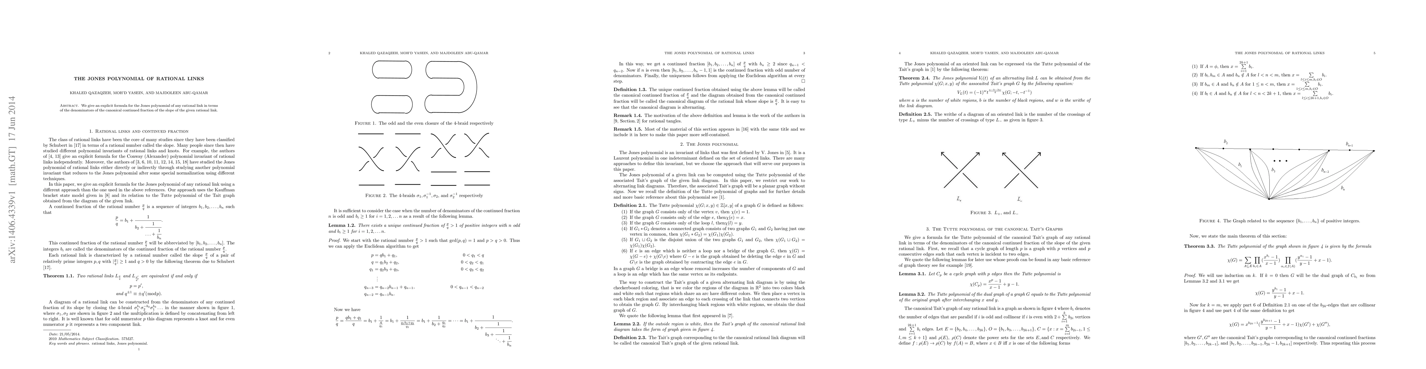 We give an explicit formula for the Jones polynomial of any rational link in terms of the denominators of the canonical continued fraction of the slope of the given rational link.
