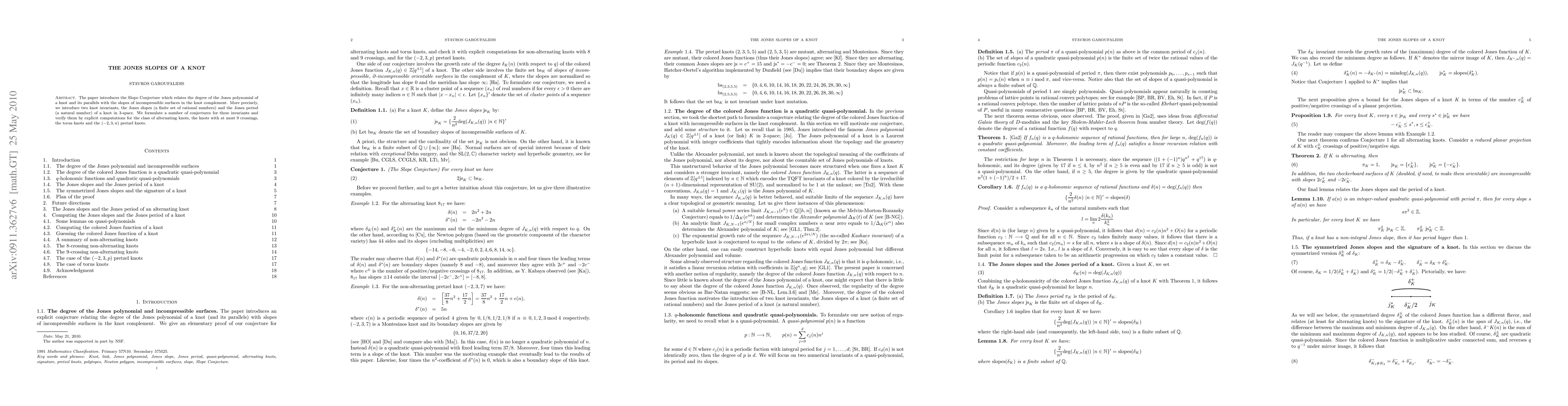 The paper proposes the Slope Conjecture, linking the degree of the Jones polynomial of a knot to the slopes of incompressible surfaces in its complement. It introduces Jones slopes and periods as new knot invariants, formulates related conjectures, and verifies them through computations for specific knot classes.