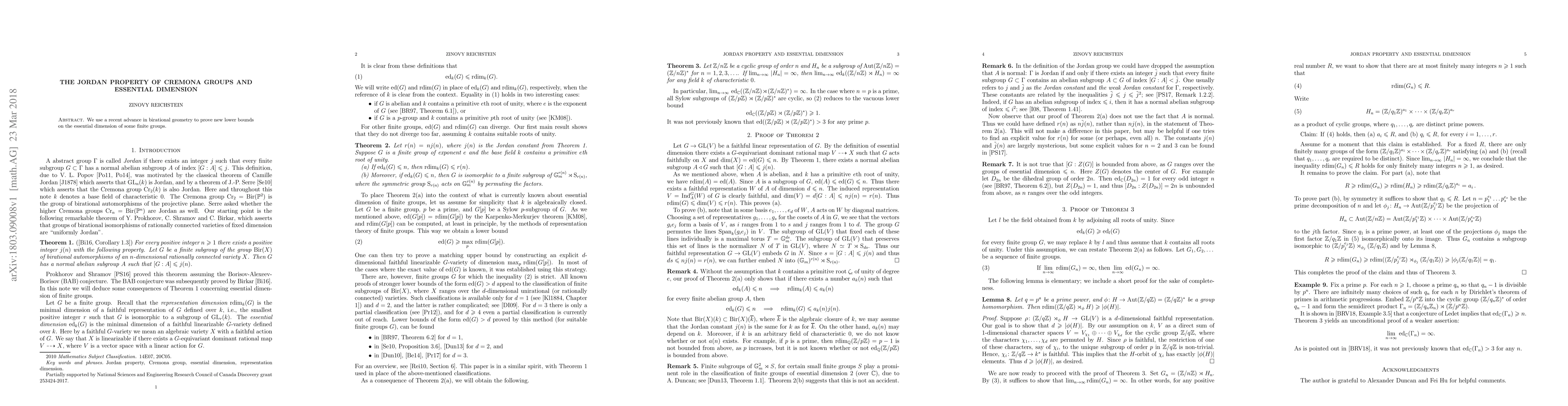 We use a recent advance in birational geometry to prove new lower bounds on the essential dimension of some finite groups.
