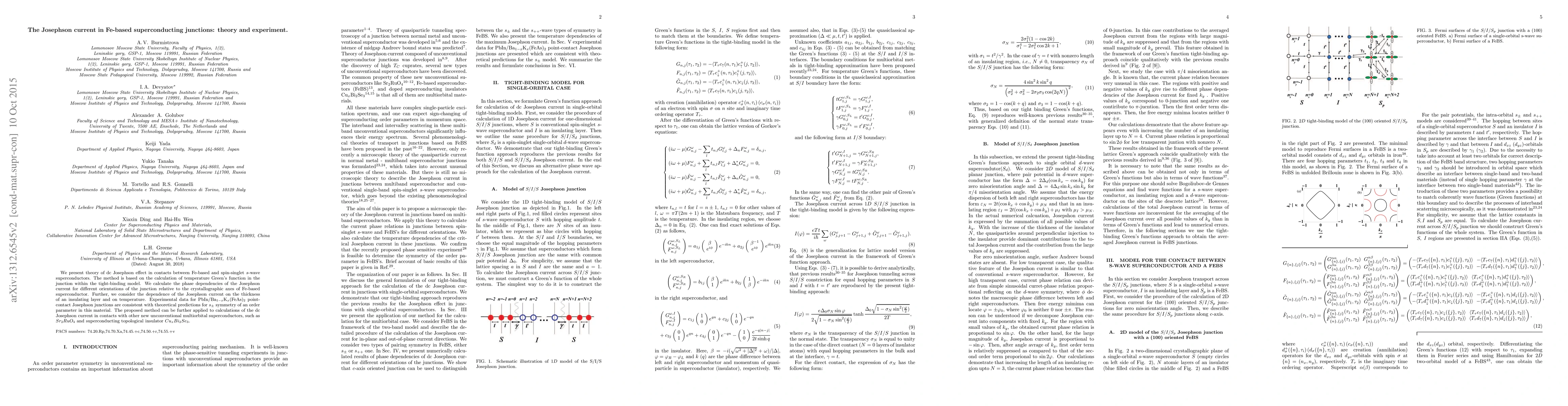 This paper presents a theoretical framework for understanding the dc Josephson effect in Fe-based superconducting junctions, showing that the Josephson current depends on the junction's orientation and the insulating layer's thickness. Experimental results for PbIn/Ba$_{1-x}$K$_{x}$(FeAs)$_2$ junctions support the theoretical predictions of $s_{\pm}$ symmetry in the order parameter.