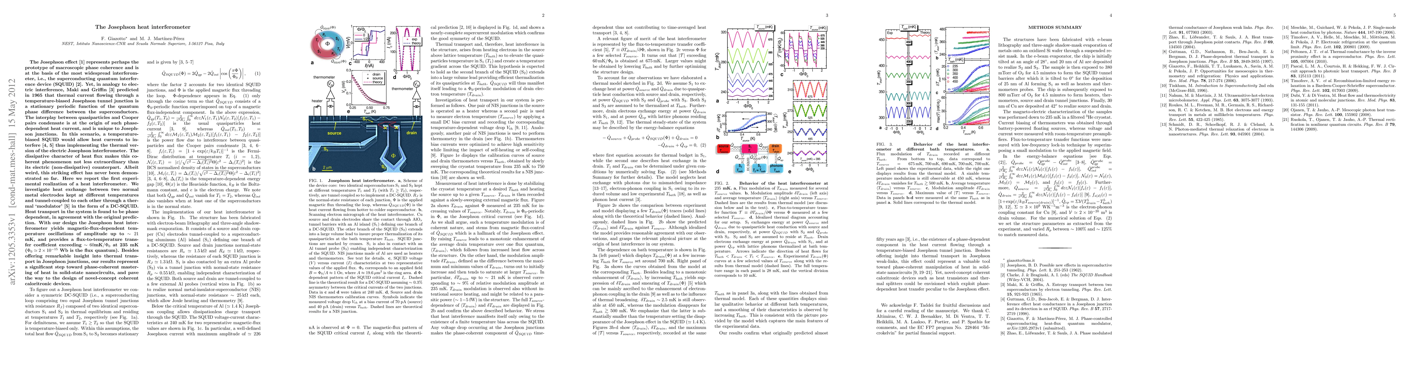 This paper reports the first experimental realization of a Josephson heat interferometer, demonstrating phase-dependent heat transport through a temperature-biased superconducting quantum interference device (SQUID). The study reveals magnetic-flux-dependent temperature oscillations, providing insights into thermal transport and paving the way for coherent caloritronic devices.