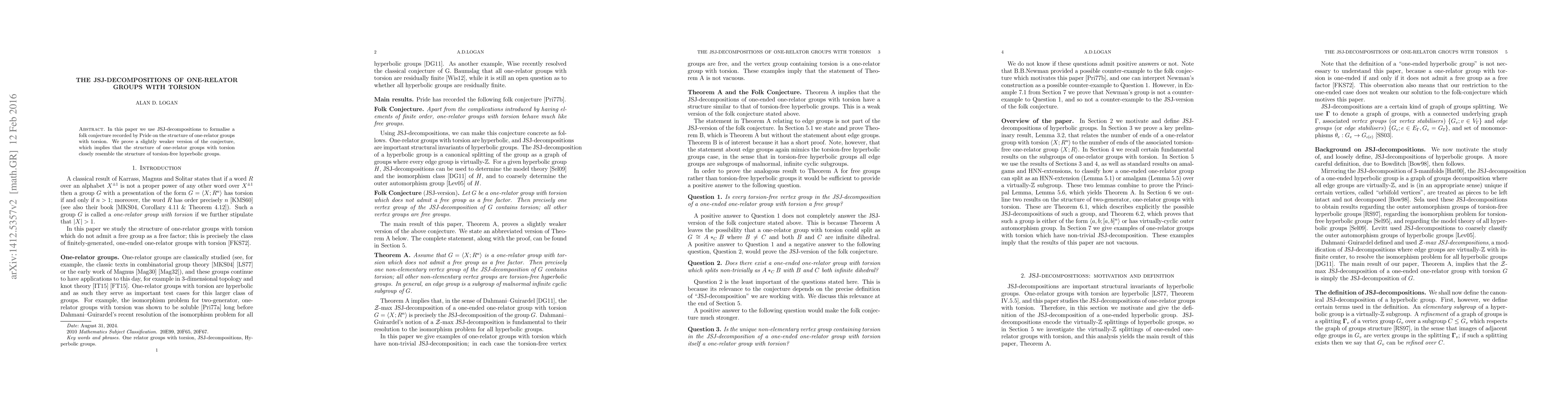 This paper formalizes and proves a weaker version of a conjecture regarding the structure of one-relator groups with torsion using JSJ-decompositions, showing they closely resemble torsion-free hyperbolic groups.