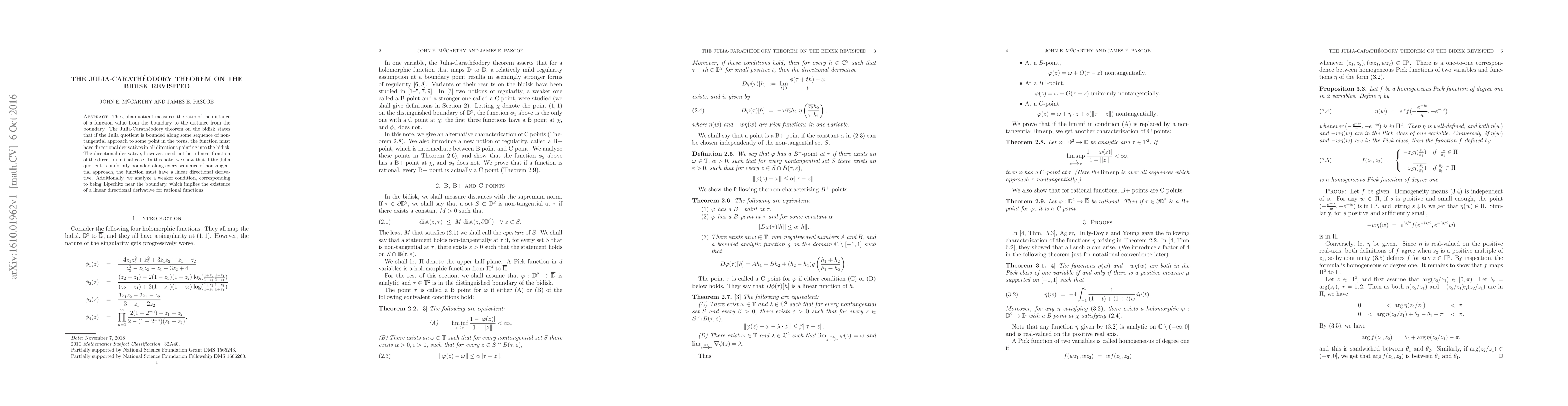 The Julia quotient measures the ratio of the distance of a function value from the boundary to the distance from the boundary. The Julia-Carath\'eodory theorem on the bidisk states that if the Julia quotient is bounded along some sequence of nontangential approach to some point in the torus, the function must have directional derivatives in all directions pointing into the bidisk. The directional derivative, however, need not be a linear function of the direction in that case. In this note, we show that if the Julia quotient is uniformly bounded along every sequence of nontangential approach, the function must have a linear directional derivative. Additionally, we analyze a weaker condition, corresponding to being Lipschitz near the boundary, which implies the existence of a linear directional derivative for rational functions.