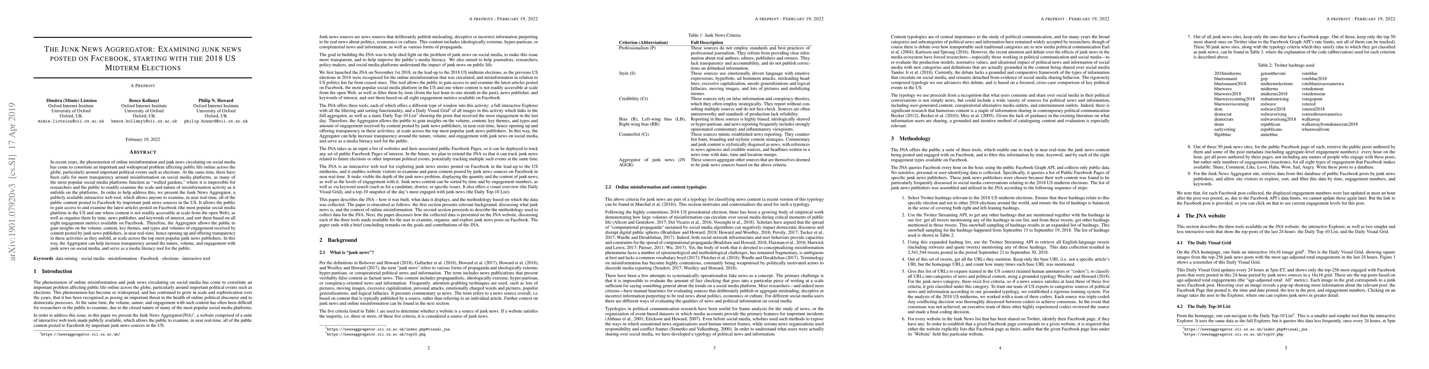 This paper introduces the Junk News Aggregator, a web tool for tracking junk news on Facebook, particularly during the 2018 US Midterm Elections. It aims to increase transparency and media literacy by allowing public access to examine the volume, themes, and engagement of junk news in near real-time, organized by publisher and keywords.