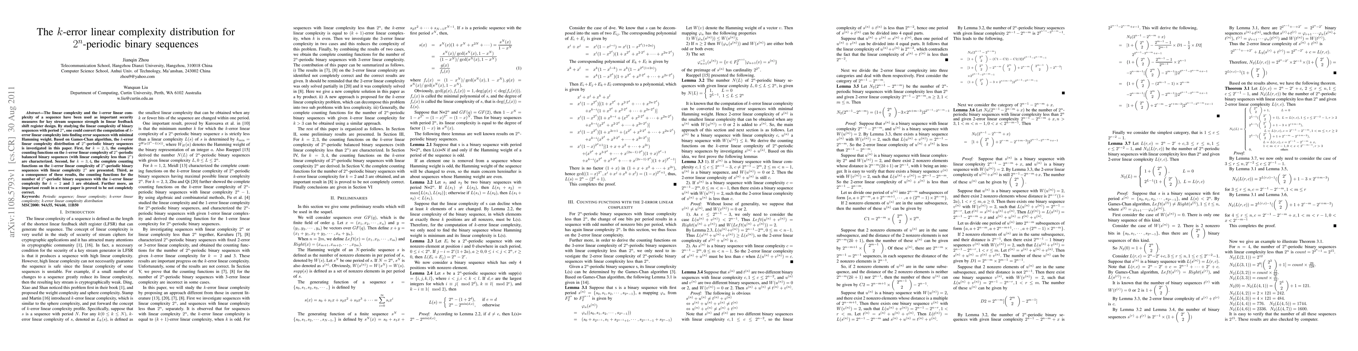 This paper investigates the $k$-error linear complexity distribution for $2^n$-periodic binary sequences, focusing on sequences with linear complexity less than $2^n$ and those with linear complexity equal to $2^n$. It characterizes counting functions for $k$-error linear complexity for $k=2,3,4$ and corrects an error in a previous study.
