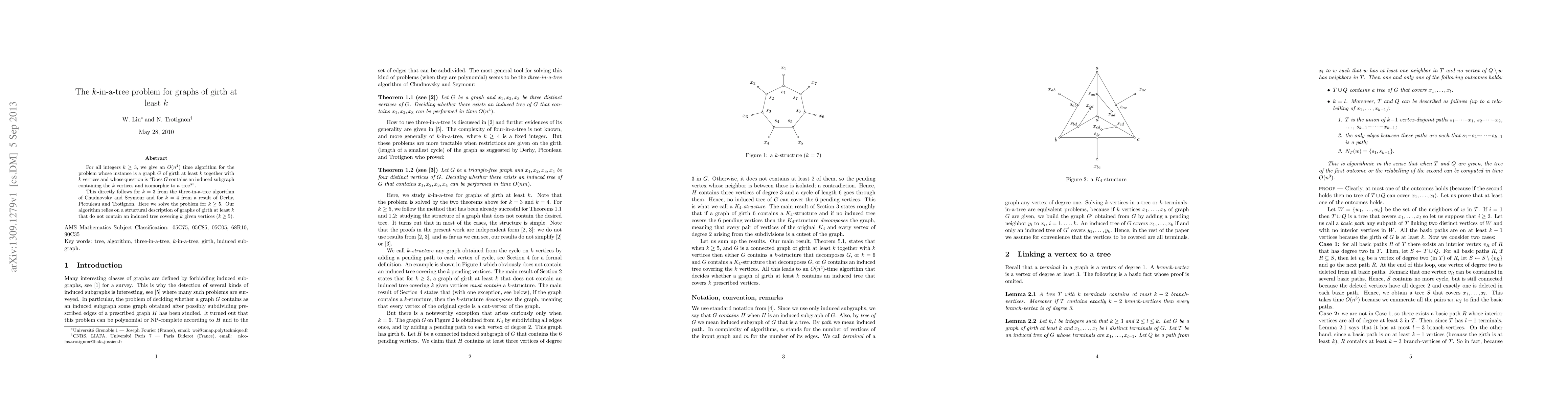 For all integers $k\geq 3$, we give an $O(n^4)$ time algorithm for the problem whose instance is a graph $G$ of girth at least $k$ together with $k$ vertices and whose question is "Does $G$ contains an induced subgraph containing the $k$ vertices and isomorphic to a tree?". This directly follows for $k=3$ from the three-in-a-tree algorithm of Chudnovsky and Seymour and for $k=4$ from a result of Derhy, Picouleau and Trotignon. Here we solve the problem for $k\geq 5$. Our algorithm relies on a structural description of graphs of girth at least $k$ that do not contain an induced tree covering $k$ given vertices ($k\geq 5$).