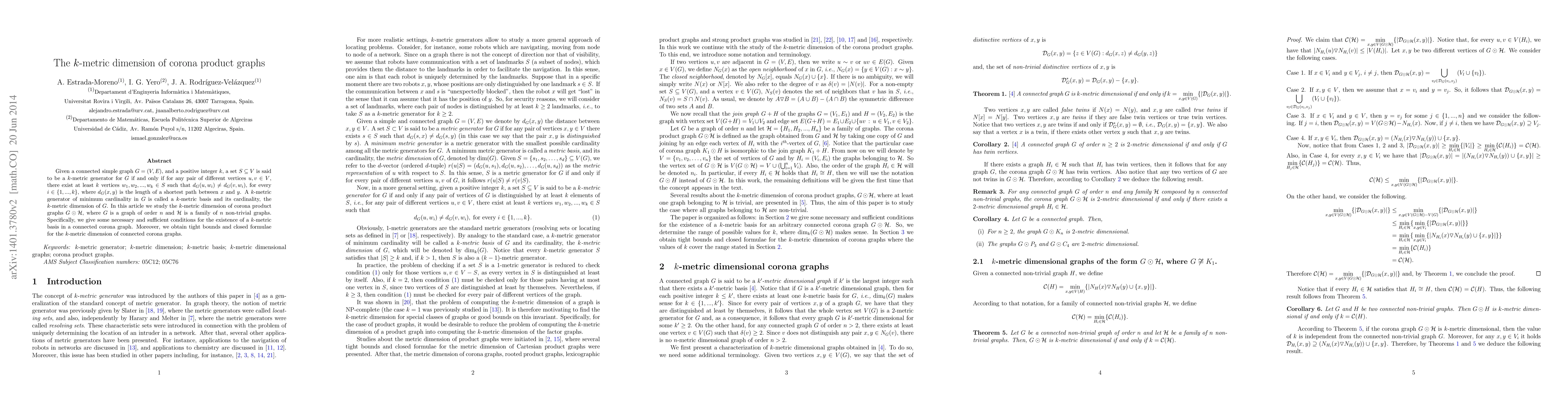 Given a connected simple graph $G=(V,E)$, and a positive integer $k$, a set $S\subseteq V$ is said to be a $k$-metric generator for $G$ if and only if for any pair of different vertices $u,v\in V$, there exist at least $k$ vertices $w_1,w_2,...,w_k\in S$ such that $d_G(u,w_i)\ne d_G(v,w_i)$, for every $i\in \{1,...,k\}$, where $d_G(x,y)$ is the length of a shortest path between $x$ and $y$. A $k$-metric generator of minimum cardinality in $G$ is called a $k$-metric basis and its cardinality, the $k$-metric dimension of $G$. In this article we study the $k$-metric dimension of corona product graphs $G\odot\mathcal{H}$, where $G$ is a graph of order $n$ and $\mathcal{H}$ is a family of $n$ non-trivial graphs. Specifically, we give some necessary and sufficient conditions for the existence of a $k$-metric basis in a connected corona graph. Moreover, we obtain tight bounds and closed formulae for the $k$-metric dimension of connected corona graphs.