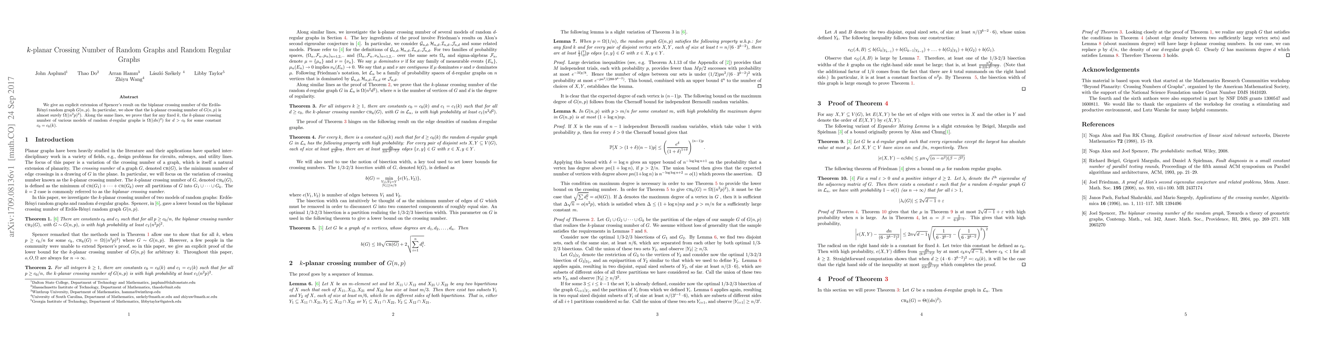 We give an explicit extension of Spencer's result on the biplanar crossing number of the Erdos-Renyi random graph $G(n,p)$. In particular, we show that the k-planar crossing number of $G(n,p)$ is almost surely $\Omega((n^2p)^2)$. Along the same lines, we prove that for any fixed $k$, the $k$-planar crossing number of various models of random $d$-regular graphs is $\Omega ((dn)^2)$ for $d > c_0$ for some constant $c_0=c_0(k)$.