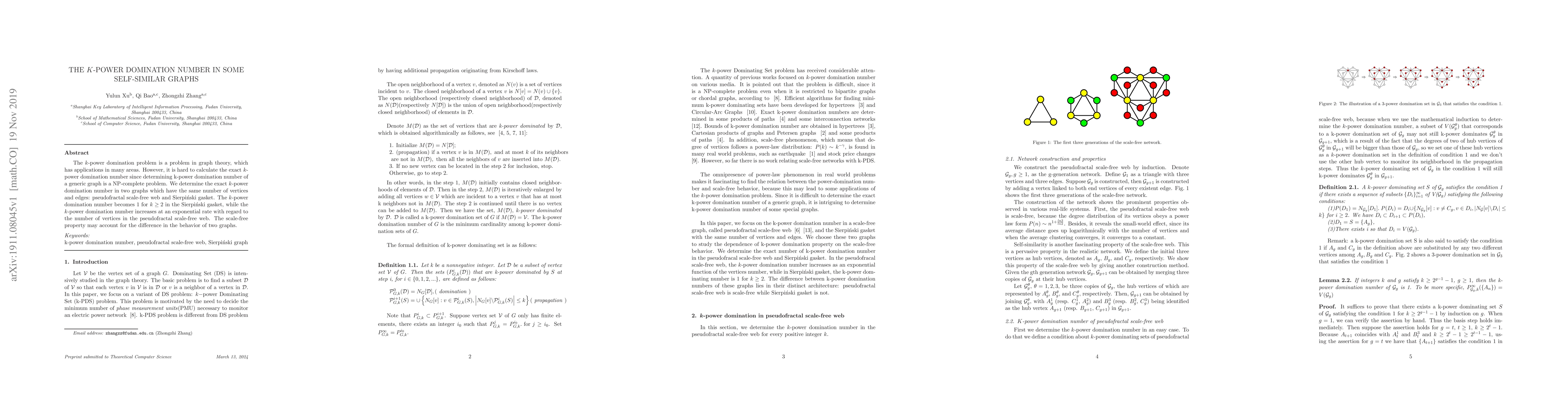 The research determines the exact k-power domination number for two self-similar graphs: pseudofractal scale-free web and Sierpiński gasket, using graph theory and NP-completeness analysis.