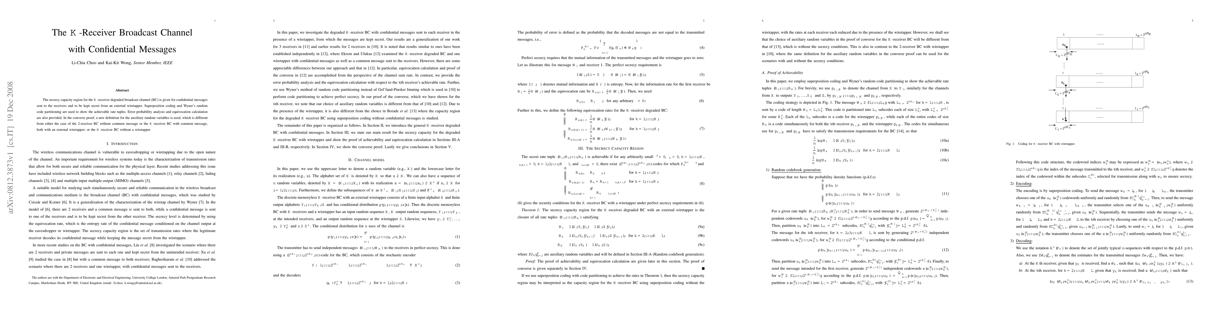 This paper determines the secrecy capacity region for a K-receiver degraded broadcast channel where confidential messages are sent to each receiver while remaining secret from an external wiretapper, using superposition coding and Wyner's random code partitioning. The study also introduces a novel definition for auxiliary random variables in the converse proof.