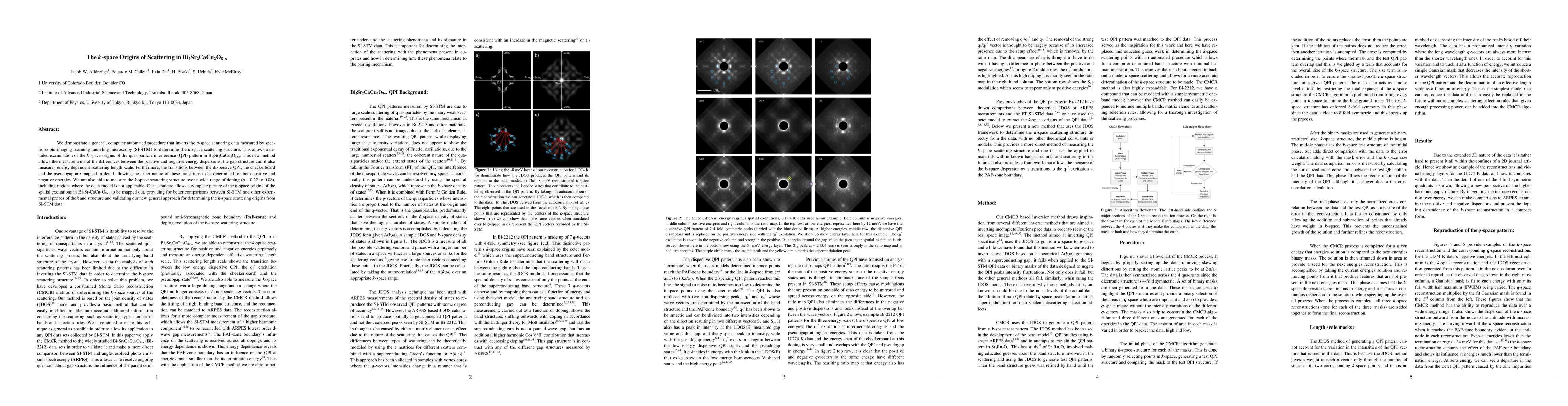 We demonstrate a general, computer automated procedure that inverts the q-space scattering data measured by spectroscopic imaging scanning tunneling microscopy (SI-STM) to determine the k-space scattering structure. This allows a detailed examination of the k-space origins of the quasiparticle interference (QPI) pattern in Bi2Sr2CaCu2O8+x. This new method allows the measurements of the differences between the positive and negative energy dispersions, the gap structure and it also measures energy dependent scattering length scale. Furthermore, the transitions between the dispersive QPI, the checkerboard and the pseudogap are mapped in detail allowing the exact nature of these transitions to be determined for both positive and negative energies. We are also able to measure the k-space scattering structure over a wide range of doping (p ~ 0.22 to 0.08), including regions where the octet model is not applicable. Our technique allows a complete picture of the k-space origins of the spatial excitations in Bi2Sr2CaCu2O8+x to be mapped out, providing for better comparisons between SI-STM and other experimental probes of the band structure and validating our new general approach for determining the k-space scattering origins from SI-STM data.