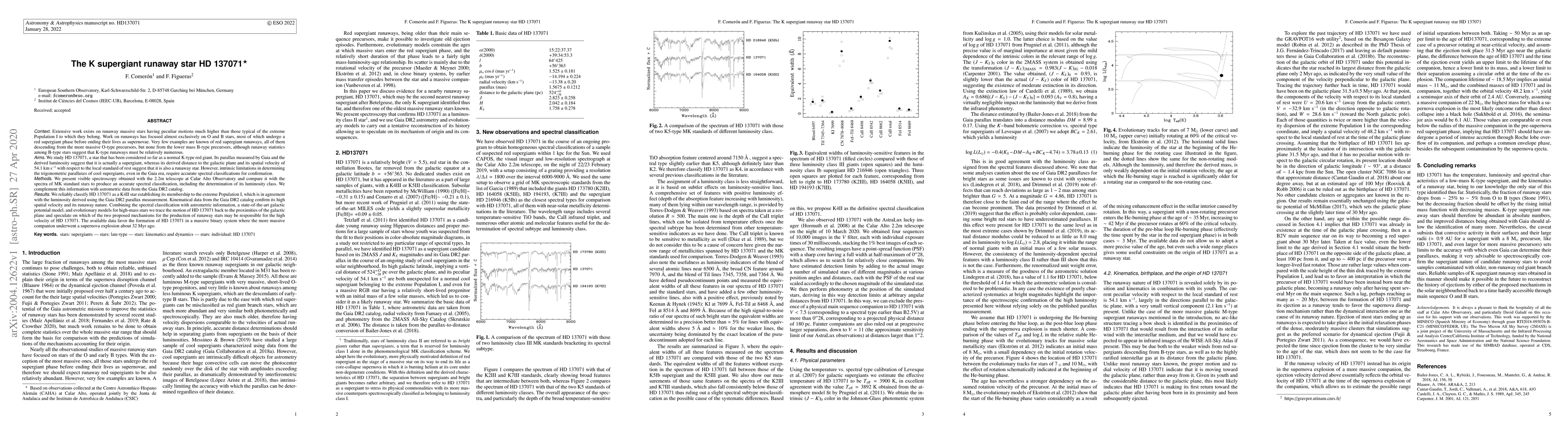 This paper identifies HD 137071 as a K-type supergiant runaway star, previously misclassified as a red giant, based on Gaia parallax measurements and spectral classification. It suggests HD 137071 likely formed in a binary system where a supernova explosion propelled it to its current high velocity.