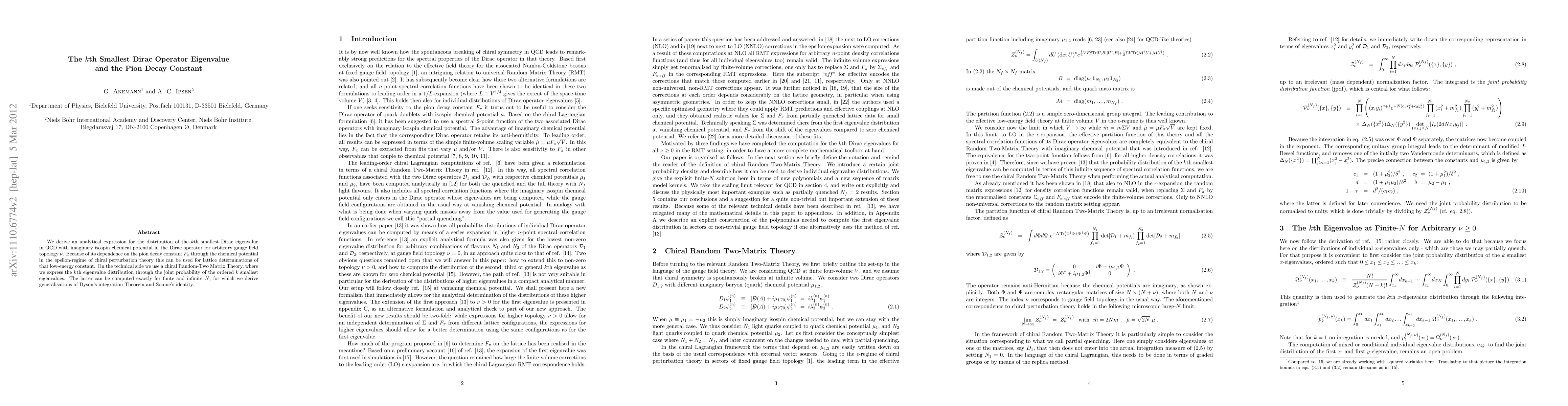 We derive an analytical expression for the distribution of the k-th smallest Dirac eigenvalue in QCD with imaginary isospin chemical potential in the Dirac operator. Because of its dependence on the pion decay constant F through the chemical potential in the epsilon-regime of chiral perturbation theory this can be used for lattice determinations of that low-energy constant. On the technical side we use a chiral Random-Two Matrix Theory, where we express the k-th eigenvalue distribution through the joint probability of the ordered k smallest eigenvalues. The latter can be computed exactly for finite and infinite N, for which we derive generalisations of Dyson's integration Theorem and Sonine's identity.