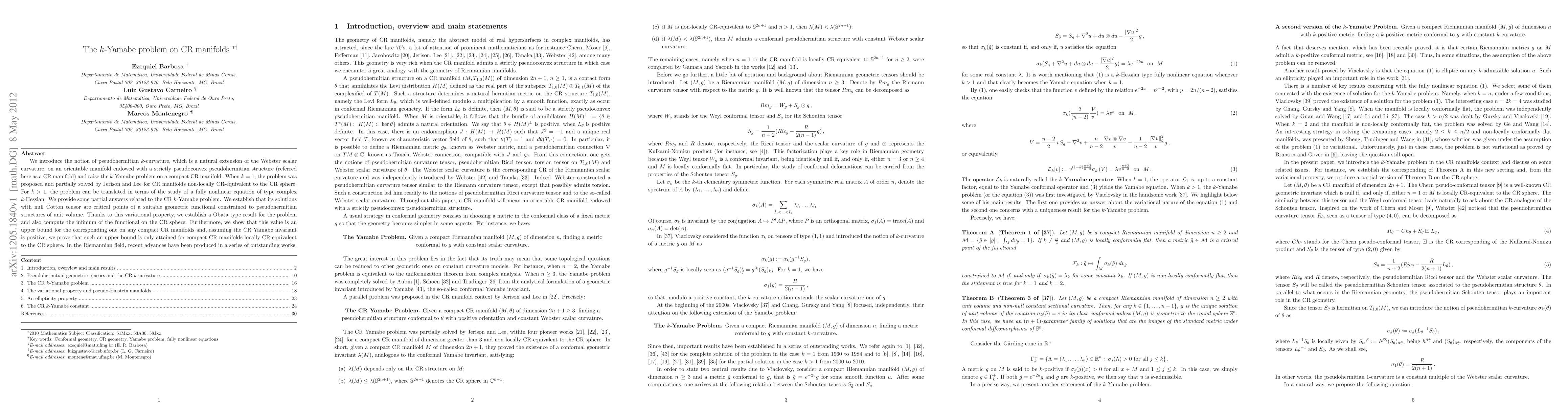 This paper introduces pseudohermitian k-curvature on CR manifolds and explores the k-Yamabe problem, providing partial solutions and establishing variational properties. It proves an Obata type result and shows that the infimum of a geometric functional on the CR sphere is an upper bound for other compact CR manifolds, attained only by those locally equivalent to the CR sphere.