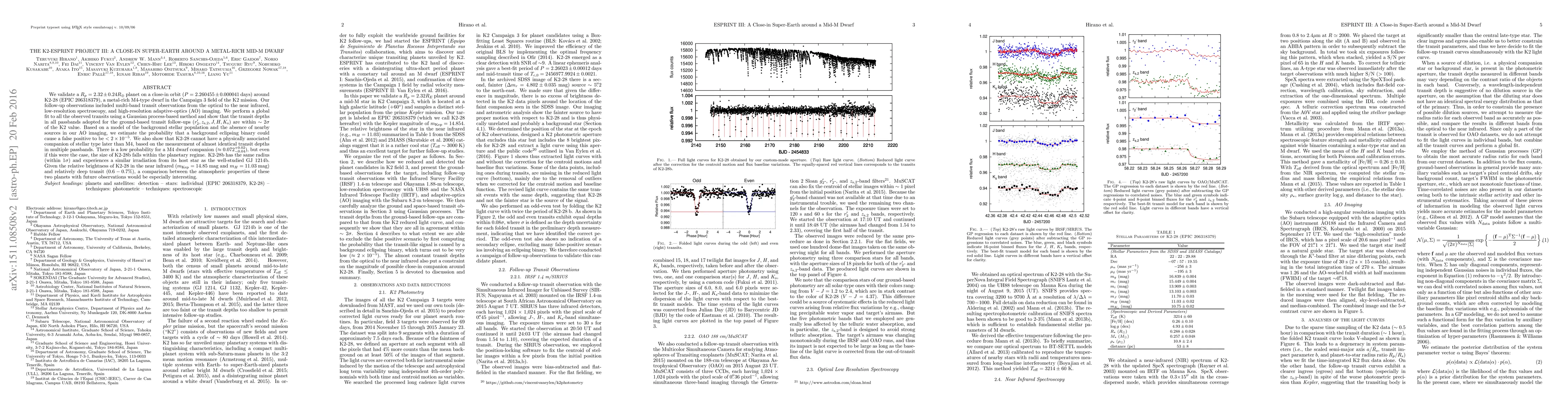 The K2-ESPRINT Project III discovers a close-in super-Earth orbiting a metal-rich M-type dwarf star, with a radius similar to that of Earth and a transit depth indicative of a potentially habitable planet.
