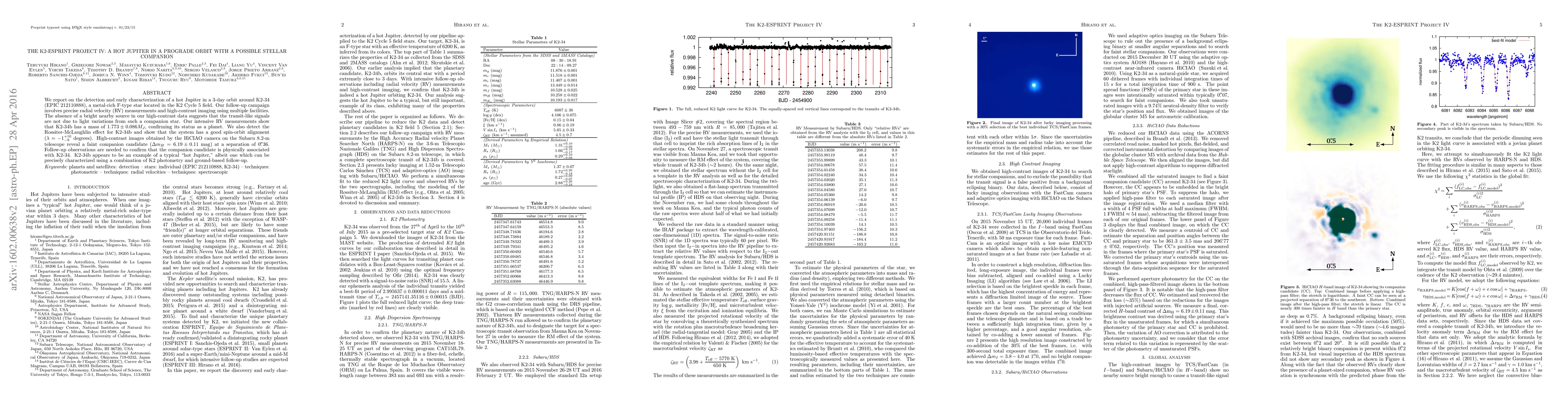 Astronomers detected a hot Jupiter orbiting metal-rich star K2-34 with precise measurements of its mass and spin-orbit alignment, but also found evidence for a possible stellar companion that needs further confirmation.