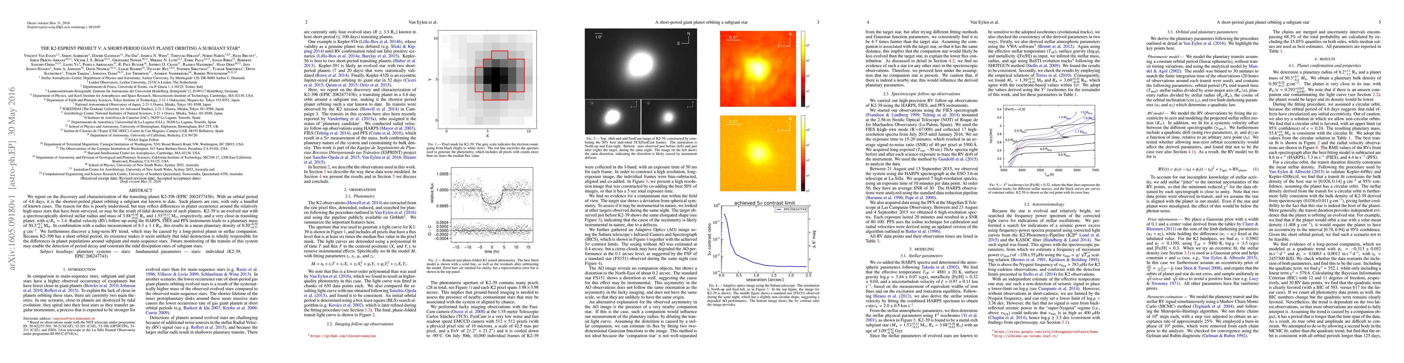 The K2-ESPRINT Project reports the discovery of K2-39b, a short-period giant planet orbiting a subgiant star with an orbital period of 4.6 days. The planet's density suggests it may be a gas giant, and the system's monitoring could reveal period decay and tidal dissipation rates.
