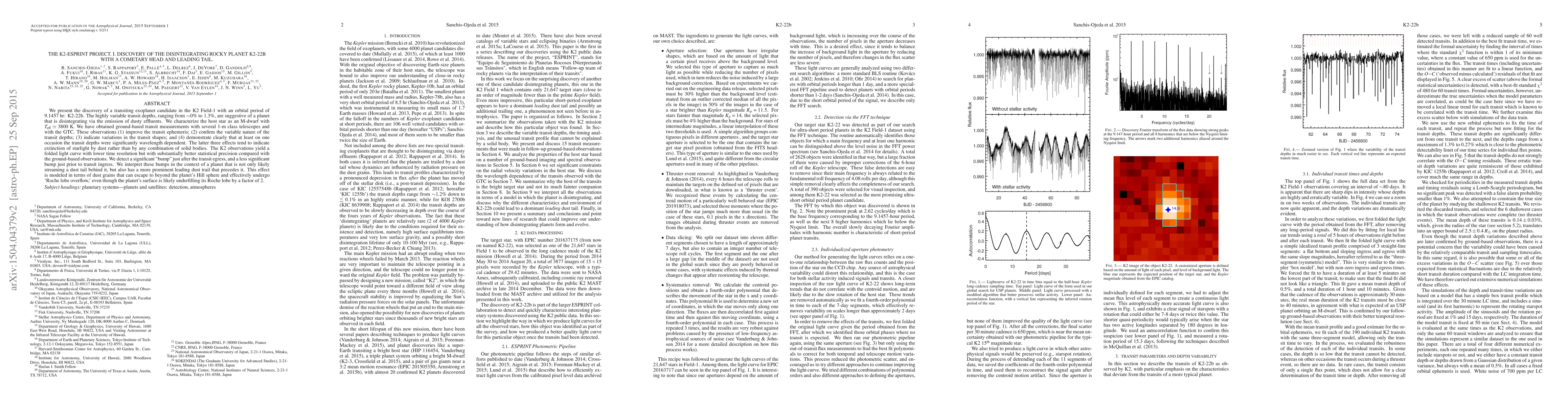 The K2-ESPRINT Project discovered K2-22b, a transiting exoplanet in the K2 Field-1, showing highly variable transit depths indicative of disintegration via dust emission. Observations reveal a cometary head and leading tail of dust, suggesting the planet streams dust both ahead and behind it.