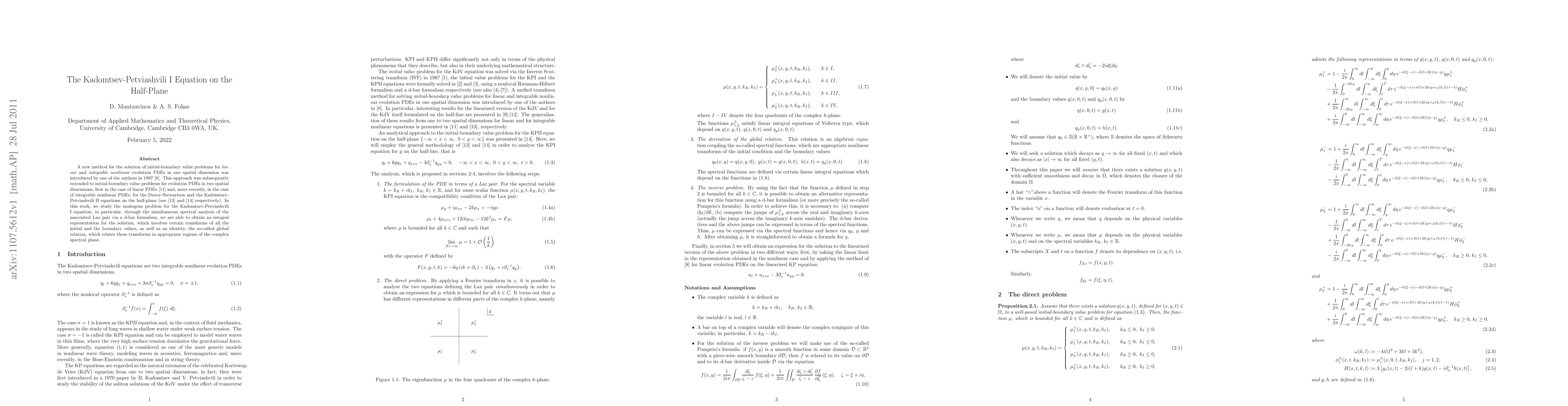 This paper introduces a new method for solving initial-boundary value problems for the Kadomtsev-Petviashvili I equation on the half-plane using spectral analysis and d-bar formalism, yielding an integral representation involving transforms of initial and boundary values.