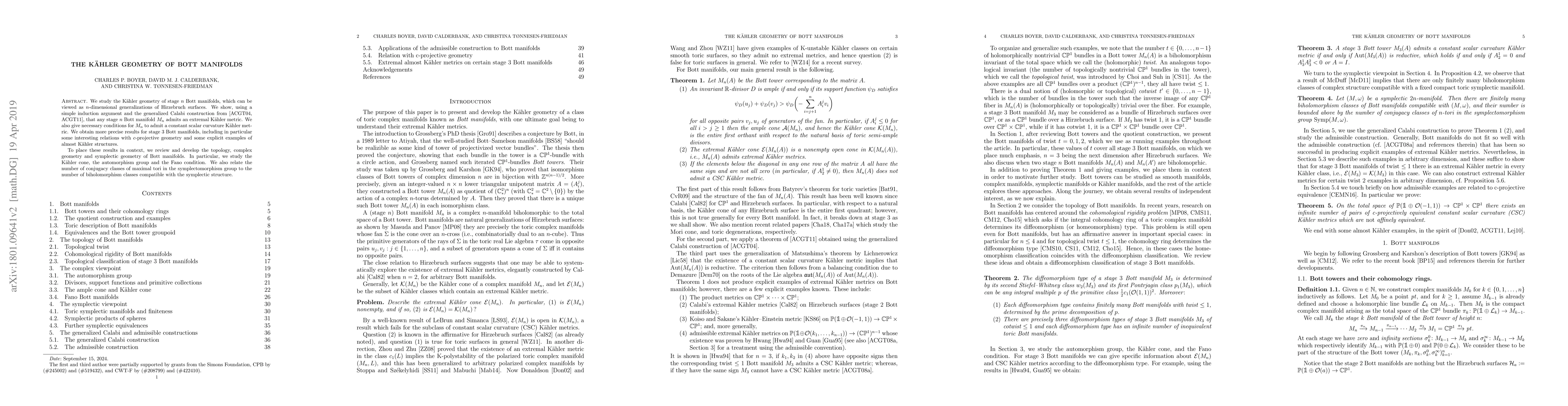 We study the K\"ahler geometry of stage n Bott manifolds, which can be viewed as $n$-dimensional generalizations of Hirzebruch surfaces. We show, using a simple induction argument and the generalized Calabi construction from [ACGT04,ACGT11], that any stage n Bott manifold $M_n$ admits an extremal K\"ahler metric. We also give necessary conditions for $M_n$ to admit a constant scalar curvature K\"ahler metric. We obtain more precise results for stage 3 Bott manifolds, including in particular some interesting relations with c-projective geometry and some explicit examples of almost K\"ahler structures. To place these results in context, we review and develop the topology, complex geometry and symplectic geometry of Bott manifolds. In particular, we study the K\"ahler cone, the automorphism group and the Fano condition. We also relate the number of conjugacy classes of maximal tori in the symplectomorphism group to the number of biholomorphism classes compatible with the symplectic structure.