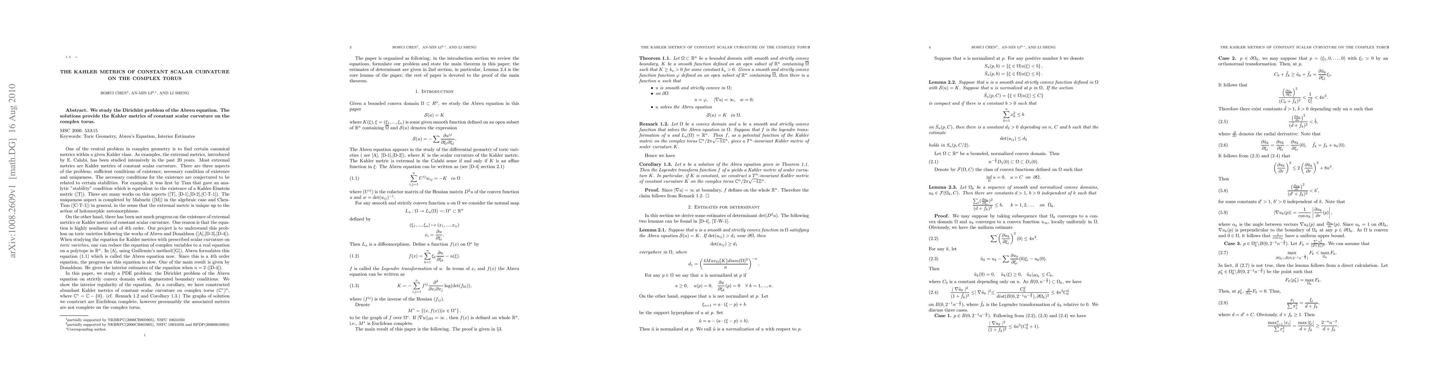 Summary: The paper investigates the Dirichlet problem for the Abreu equation, which yields the Kahler metrics of constant scalar curvature on the complex torus. These metrics are crucial for understanding the geometric properties of the complex torus.