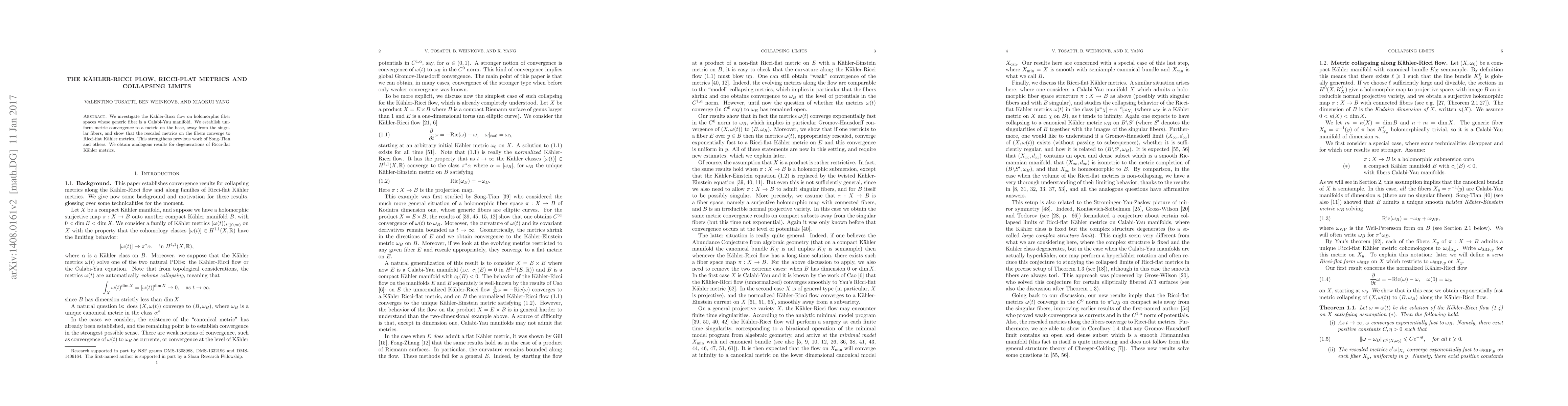 This paper explores the Kähler-Ricci flow on holomorphic fiber spaces with Calabi-Yau generic fibers, demonstrating uniform convergence to a base metric and rescaled fiber metrics converging to Ricci-flat Kähler metrics. It extends prior results on Ricci-flat metric degenerations.