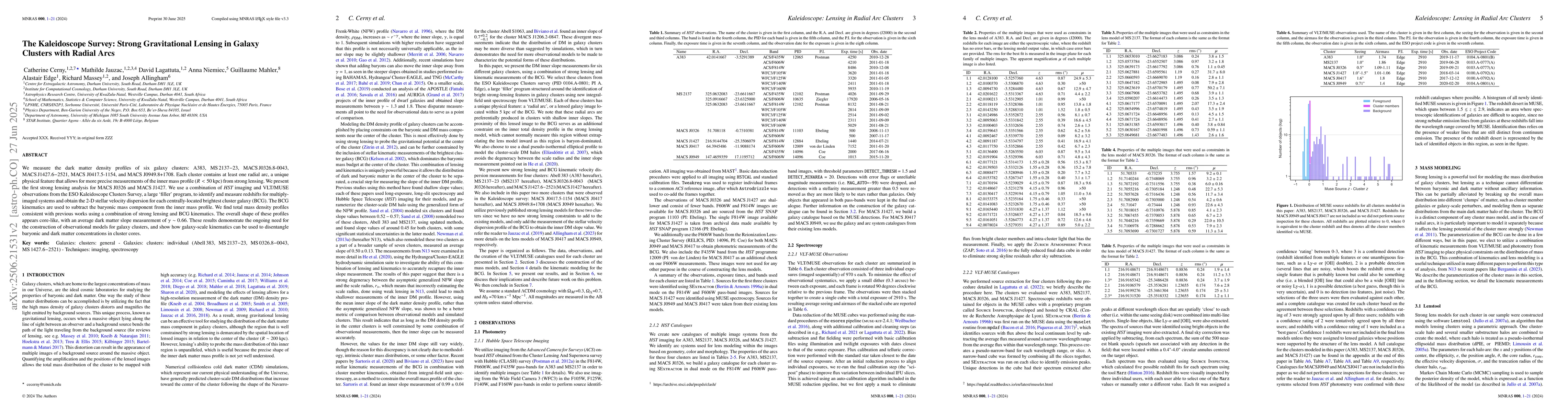 We measure the dark matter density profiles of six galaxy clusters: A383, MS 2137-23, MACS J0326.8-0043, MACS J1427.6-2521, MACS J0417.5-1154, and MACS J0949.8+1708. Each cluster contains at least one radial arc, a unique physical feature that allows for more precise measurements of the inner mass profile (R < 50 kpc) from strong lensing. We present the first strong lensing analysis for MACS J0326 and MACS J1427. We use a combination of HST imaging and VLT/MUSE observations from the ESO Kaleidoscope Clusters Survey, a large `filler' program, to identify and measure redshifts for multiply-imaged systems and obtain the 2-D stellar velocity dispersion for each centrally-located brightest cluster galaxy (BCG). The BCG kinematics are used to subtract the baryonic mass component from the inner mass profile. We find total mass density profiles consistent with previous works using a combination of strong lensing and BCG kinematics. The overall shape of these profiles appears core-like, with an average dark matter slope measurement of $\gamma$~0.66. These results demonstrate the ongoing need for the construction of observational models for galaxy clusters, and show how galaxy-scale kinematics can be used to disentangle baryonic and dark matter concentrations in cluster cores.