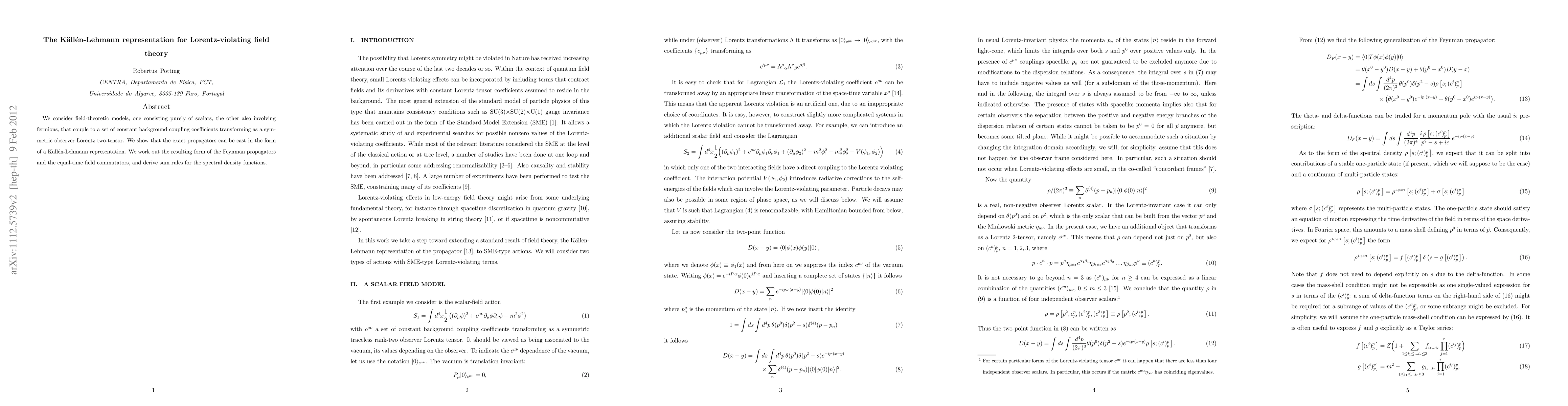 The paper establishes a Källén-Lehmann representation for Lorentz-violating field theories, generalizing previous work to include non-trivial momentum dependence of observer scalars, and derives explicit forms for propagators and commutators.