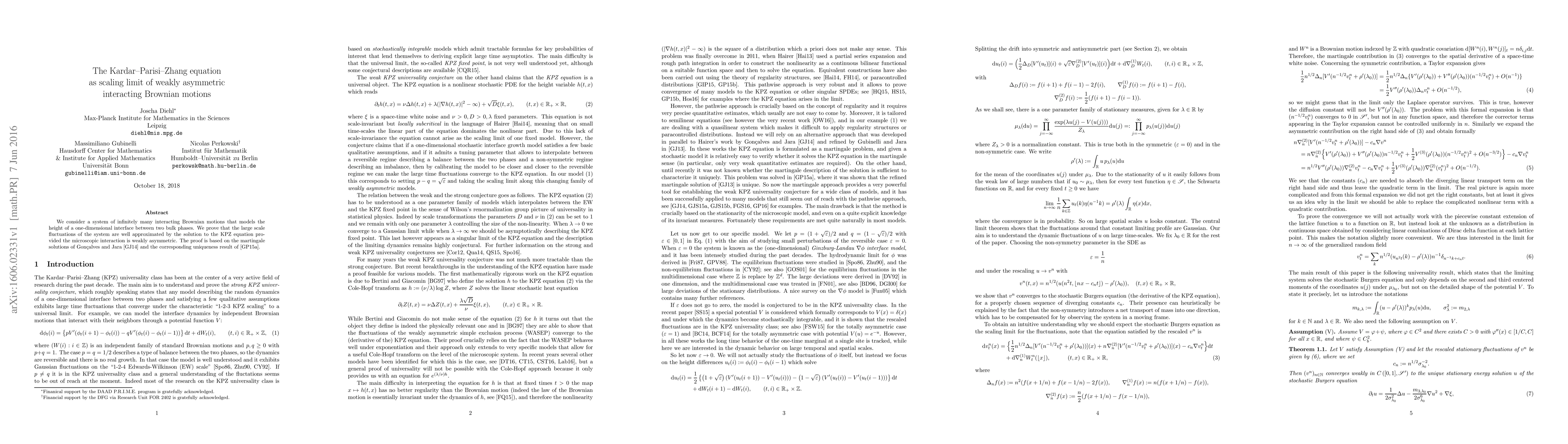 This paper demonstrates that the Kardar-Parisi-Zhang (KPZ) equation accurately describes the large scale fluctuations of a system of weakly asymmetric interacting Brownian motions, using martingale solutions and uniqueness results from previous studies.