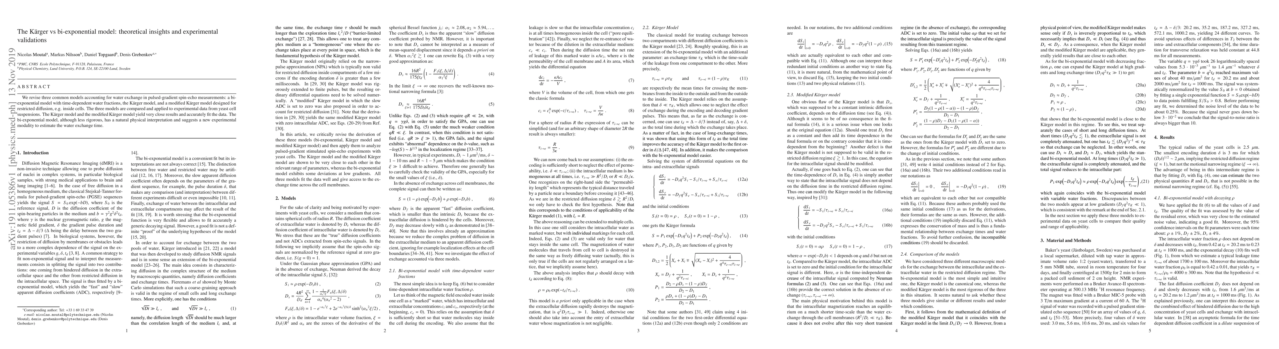 This paper compares three models for water exchange in pulsed-gradient spin-echo measurements: a bi-exponential model, the K\"arger model, and a modified K\"arger model. Experimental data from yeast cell suspensions show that the K\"arger and modified K\"arger models provide accurate fits, while the bi-exponential model offers a simpler physical interpretation and suggests a new method for estimating water exchange time.