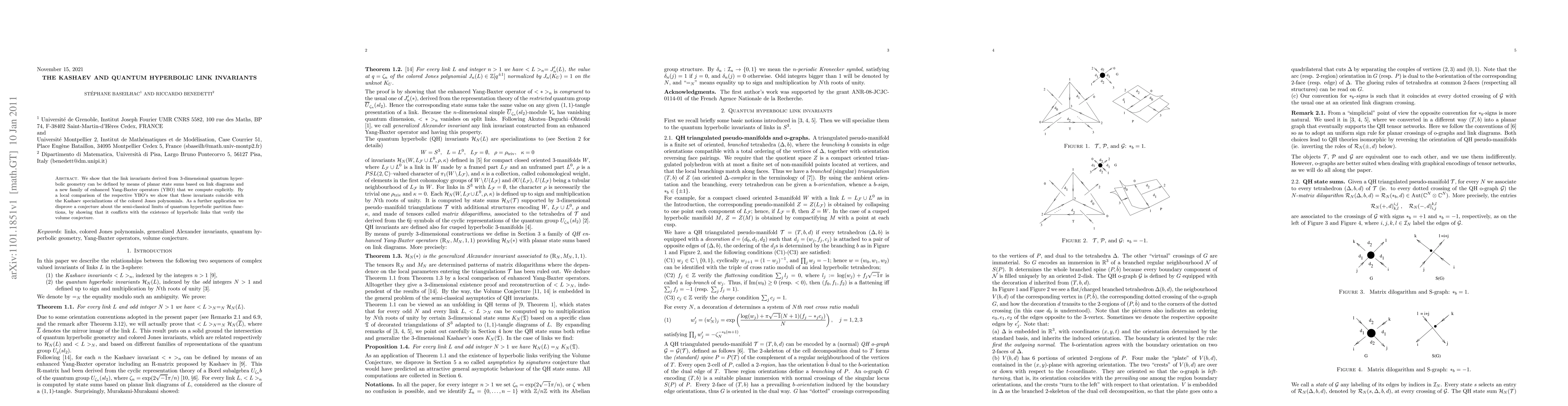 We show that the link invariants derived from 3-dimensional quantum hyperbolic geometry can be defined by means of planar state sums based on link diagrams and a new family of enhanced Yang-Baxteroperators (YBO) that we compute explicitly. By a local comparison of the respective YBO's we show that these invariants coincide with the Kashaev specializations of the colored Jones polynomials. As a further application we disprove a conjecture about the semi-classical limits of quantum hyperbolic partition functions, by showing that it conflicts with the existence of hyperbolic links that verify the volume conjecture.