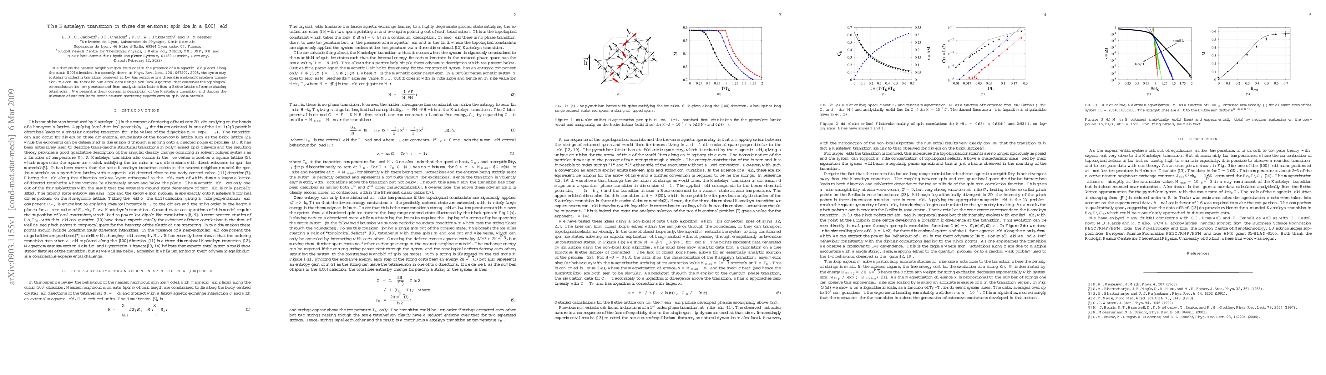 This paper investigates the three-dimensional Kasteleyn transition in the spin ice model under a magnetic field aligned along the [100] direction. The study confirms the transition via numerical data and analytic calculations, providing a thermodynamic description relevant to neutron scattering experiments on spin ice materials.