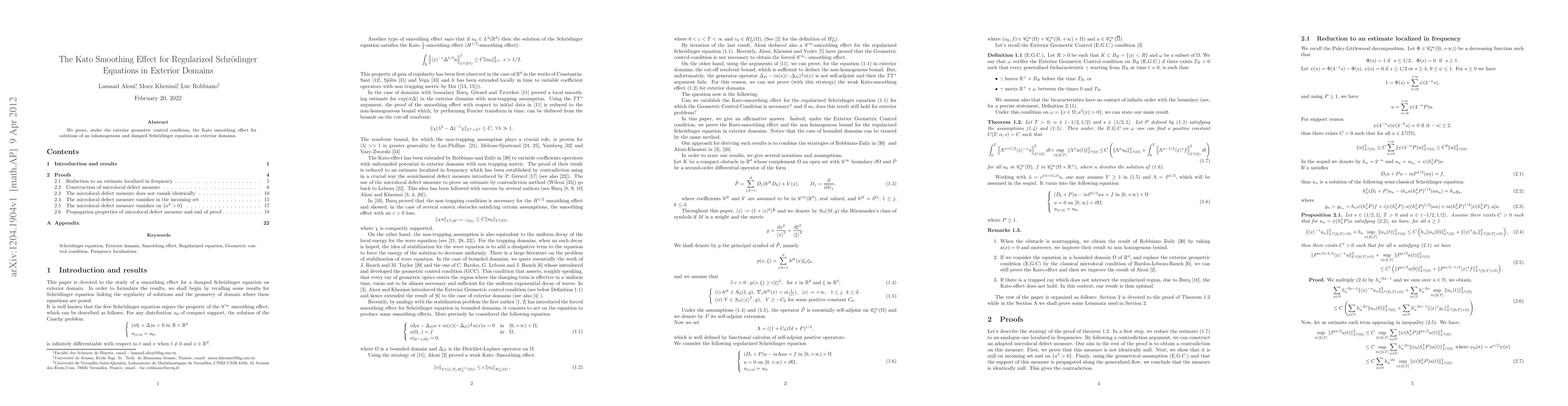 Summary: This paper proves the Kato smoothing effect for solutions of an inhomogeneous and damped Schrödinger equation under the exterior geometric control condition. The focus is on the behavior of solutions in exterior domains.