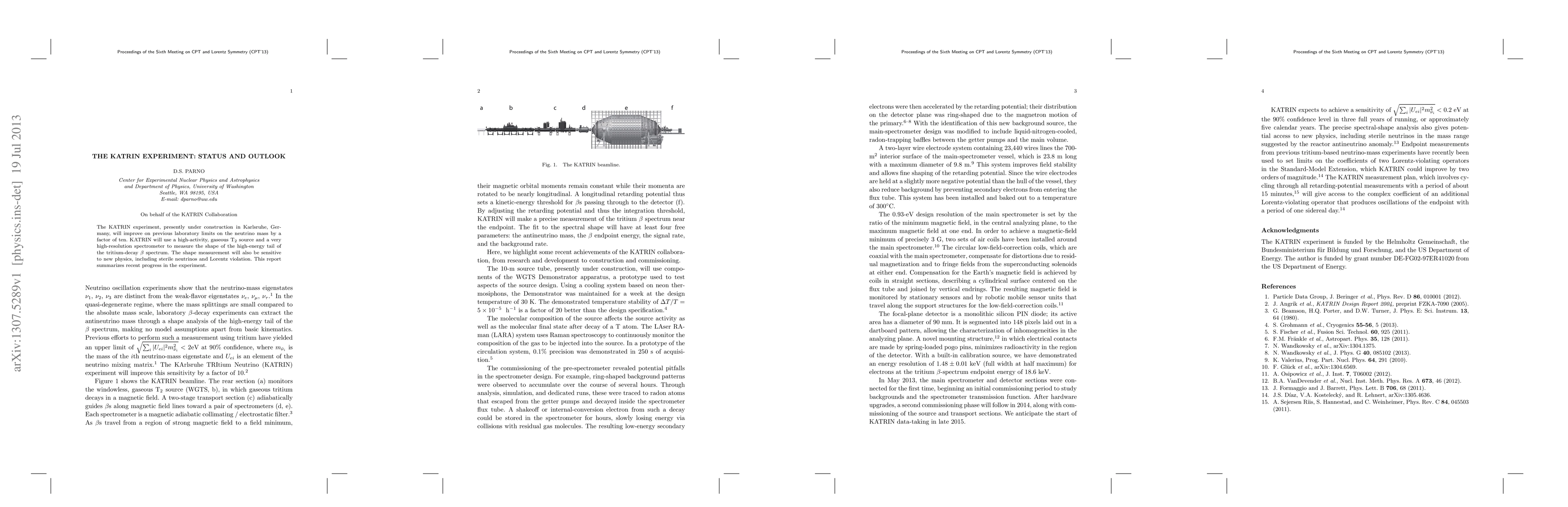 The KATRIN experiment aims to enhance the measurement of neutrino mass by a factor of ten using a high-resolution spectrometer and a gaseous T2 source. It also seeks to detect potential new physics phenomena, including sterile neutrinos and Lorentz violation.