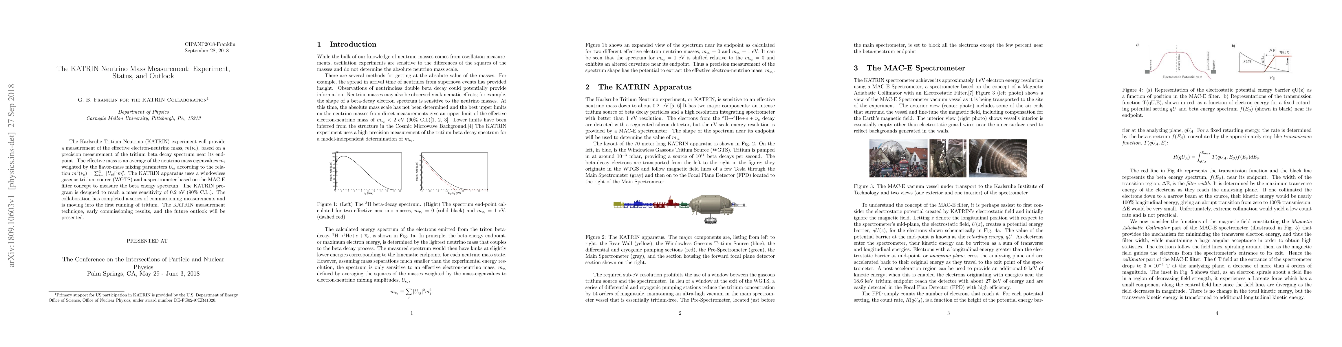 The KATRIN experiment aims to measure the effective electron-neutrino mass through a precise analysis of the tritium beta decay spectrum. The collaboration has completed initial tests and is preparing for the first tritium measurements, targeting a sensitivity of 0.2 eV.