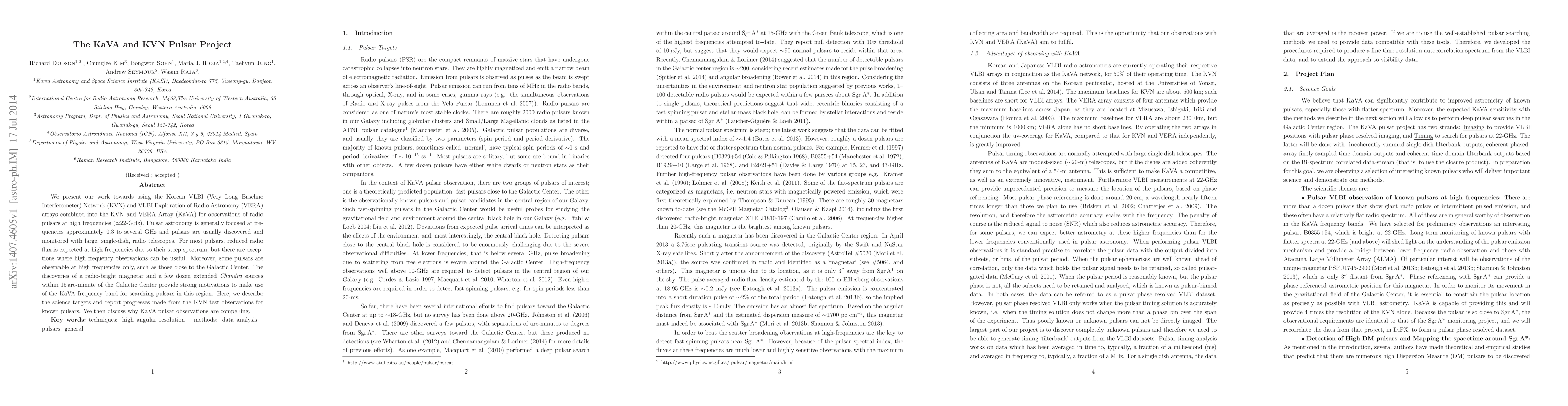 We present our work towards using the Korean VLBI (Very Long Baseline Interferometer) Network (KVN) and VLBI Exploration of Radio Astronomy (VERA) arrays combined into the KVN and VERA Array (KaVA) for observations of radio pulsars at high frequencies ($\simeq$22-GHz). Pulsar astronomy is generally focused at frequencies approximately 0.3 to several GHz and pulsars are usually discovered and monitored with large, single-dish, radio telescopes. For most pulsars, reduced radio flux is expected at high frequencies due to their steep spectrum, but there are exceptions where high frequency observations can be useful. Moreover, some pulsars are observable at high frequencies only, such as those close to the Galactic Center. The discoveries of a radio-bright magnetar and a few dozen extended Chandra sources within 15 arc-minute of the Galactic Center provide strong motivations to make use of the KaVA frequency band for searching pulsars in this region. Here, we describe the science targets and report progresses made from the KVN test observations for known pulsars. We then discuss why KaVA pulsar observations are compelling.