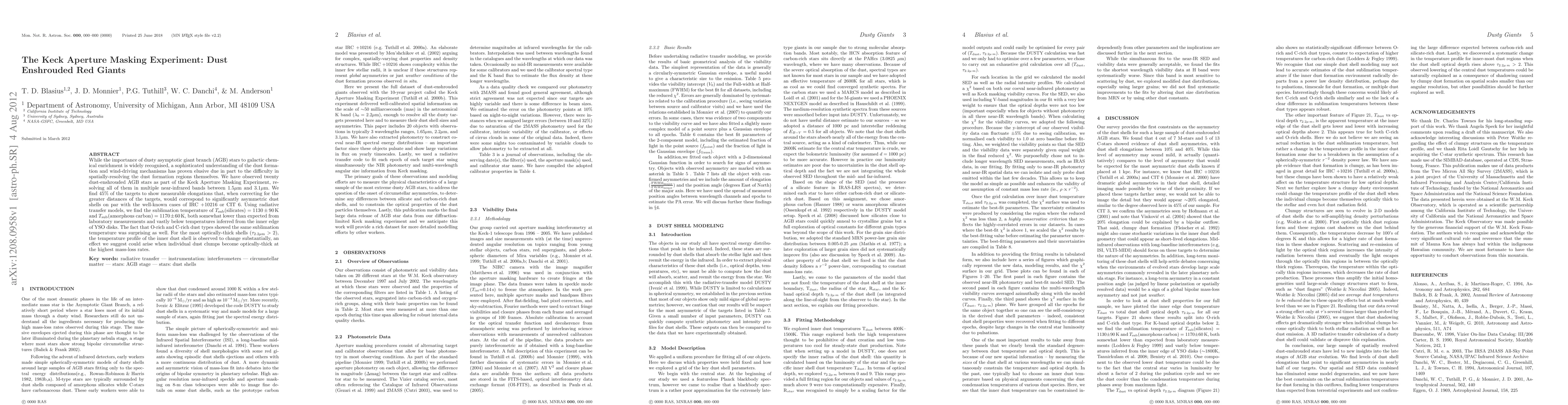 The Keck Aperture Masking Experiment reveals that 45% of dust-enshrouded AGB stars exhibit asymmetric dust shells, challenging existing models of dust formation and wind-driving mechanisms. Radiative transfer models show lower-than-expected sublimation temperatures for silicates and amorphous carbon, suggesting complex dust clumping effects in the most optically-thick shells.