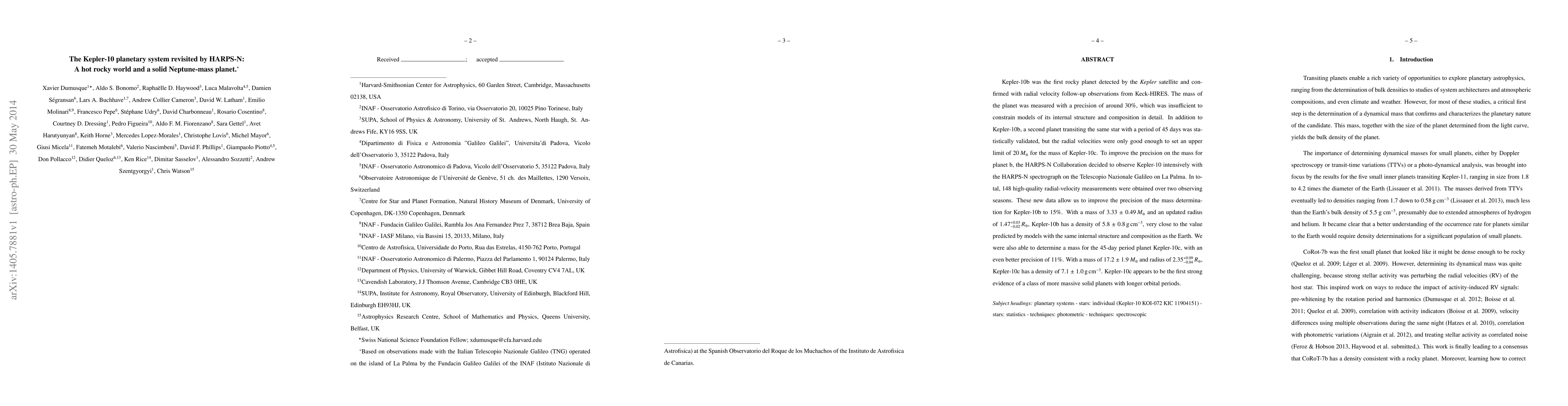The Kepler-10 planetary system was revisited using HARPS-N, revealing improved mass precision for Kepler-10b, a hot rocky planet, and confirming the existence of Kepler-10c, a solid Neptune-mass planet with a longer orbital period.